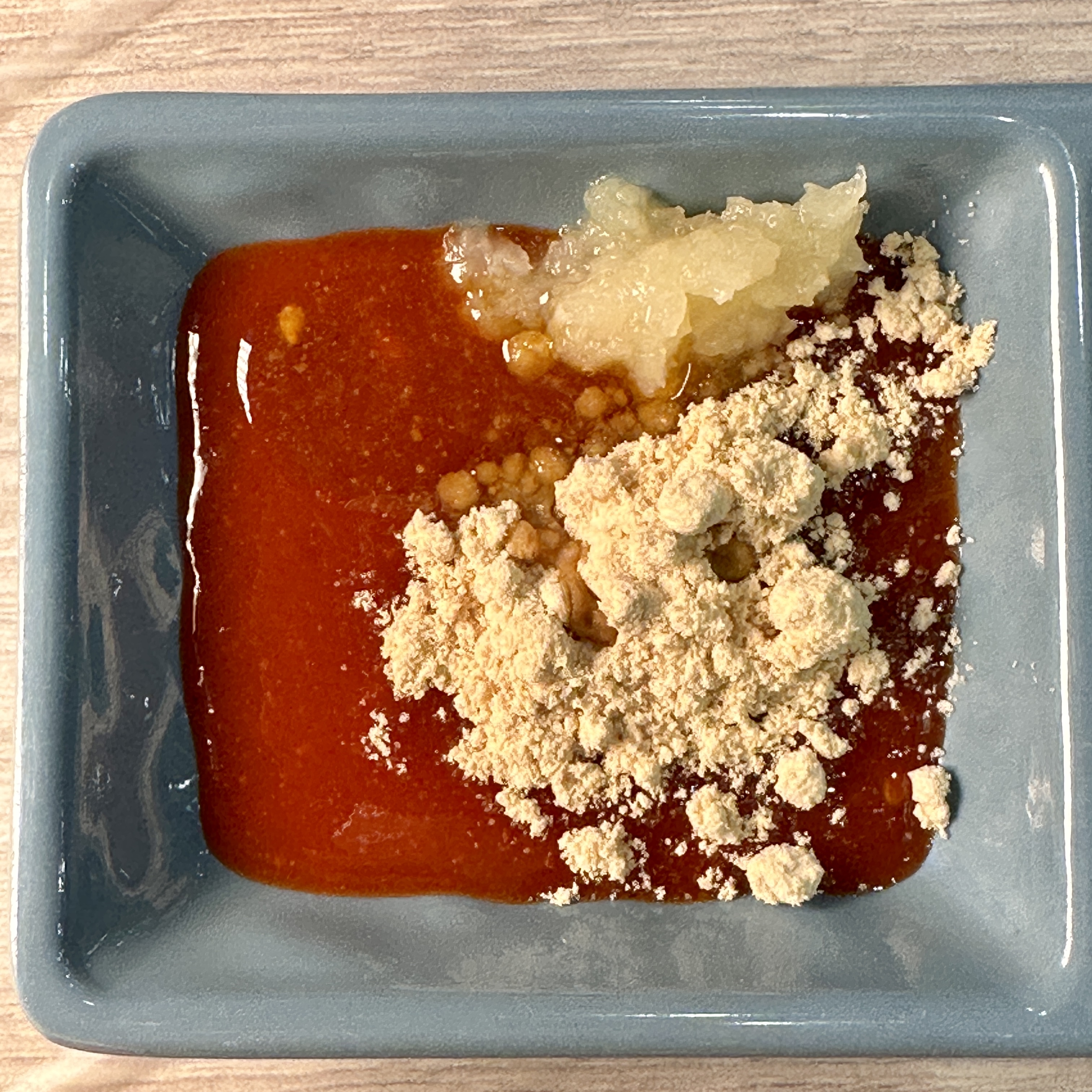 2. 초장과 콩가루를 적당히 섞는다. (콩가루 많이 넣으면 텁텁할 수 있음)