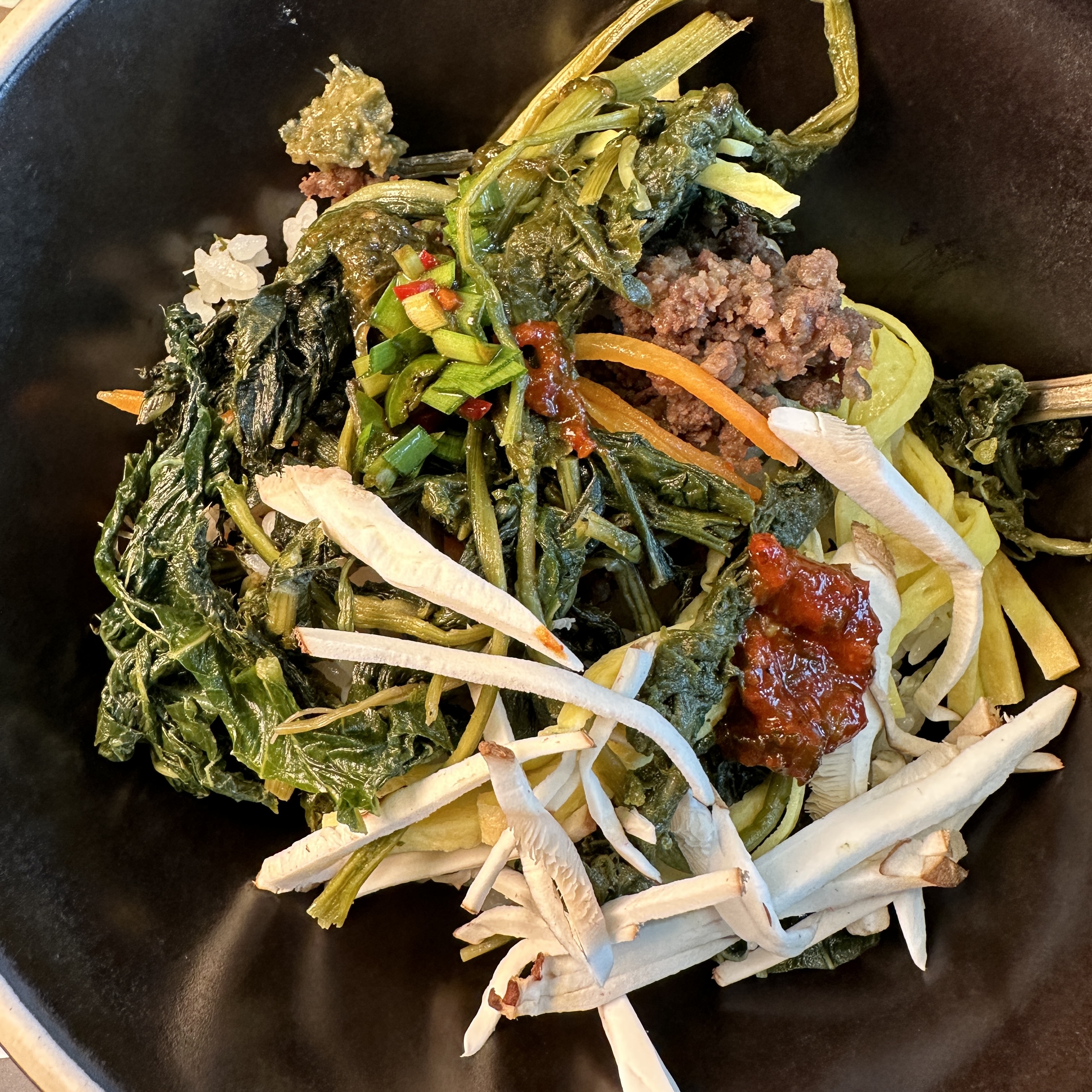 그리고 나물밥이 나오는데 나물밥은 네가지 맛있는 소스와 함께 먹으면 더욱 맛나더라구요!