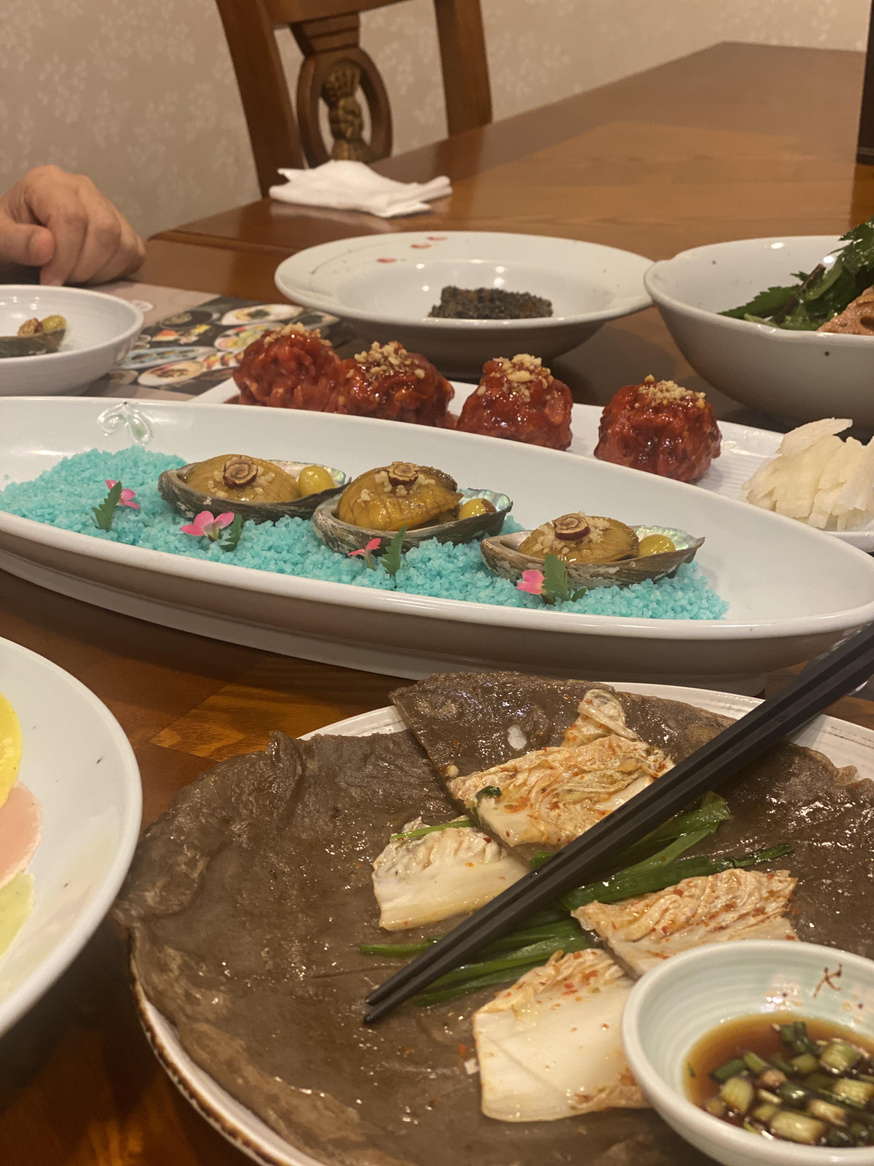볶음 밥 전 가장 인상깊었던 음식은 육회와 전복이었어요!!