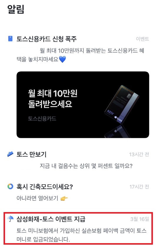 가입이벤트를 하는걸 보고 토스를 통해서 보험을 가입했습니다.