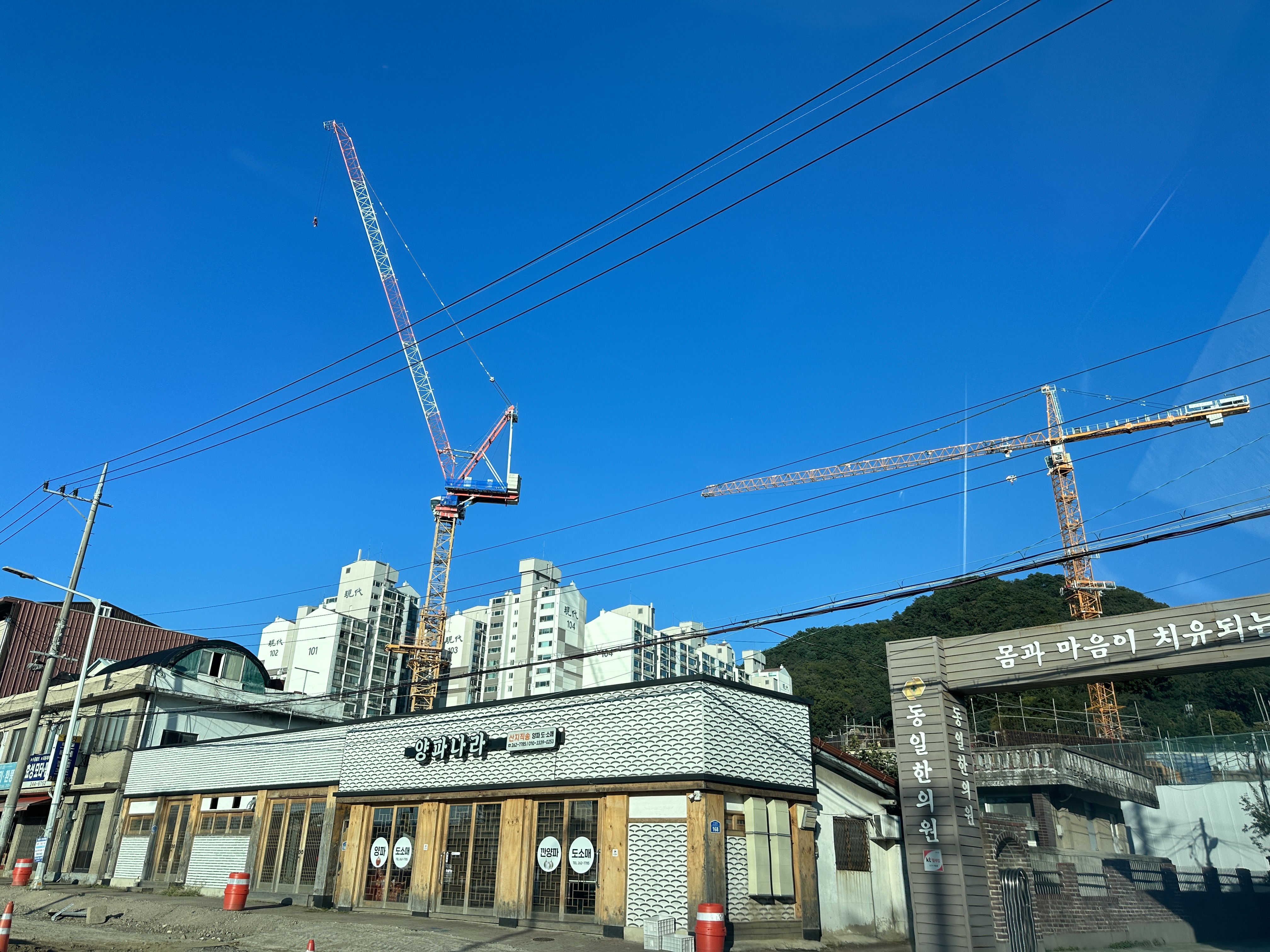 근화동 현장에는 대형크레인이 많이 세워져 바삐 진행중인 현장감을 느낄 수 있었습니다.