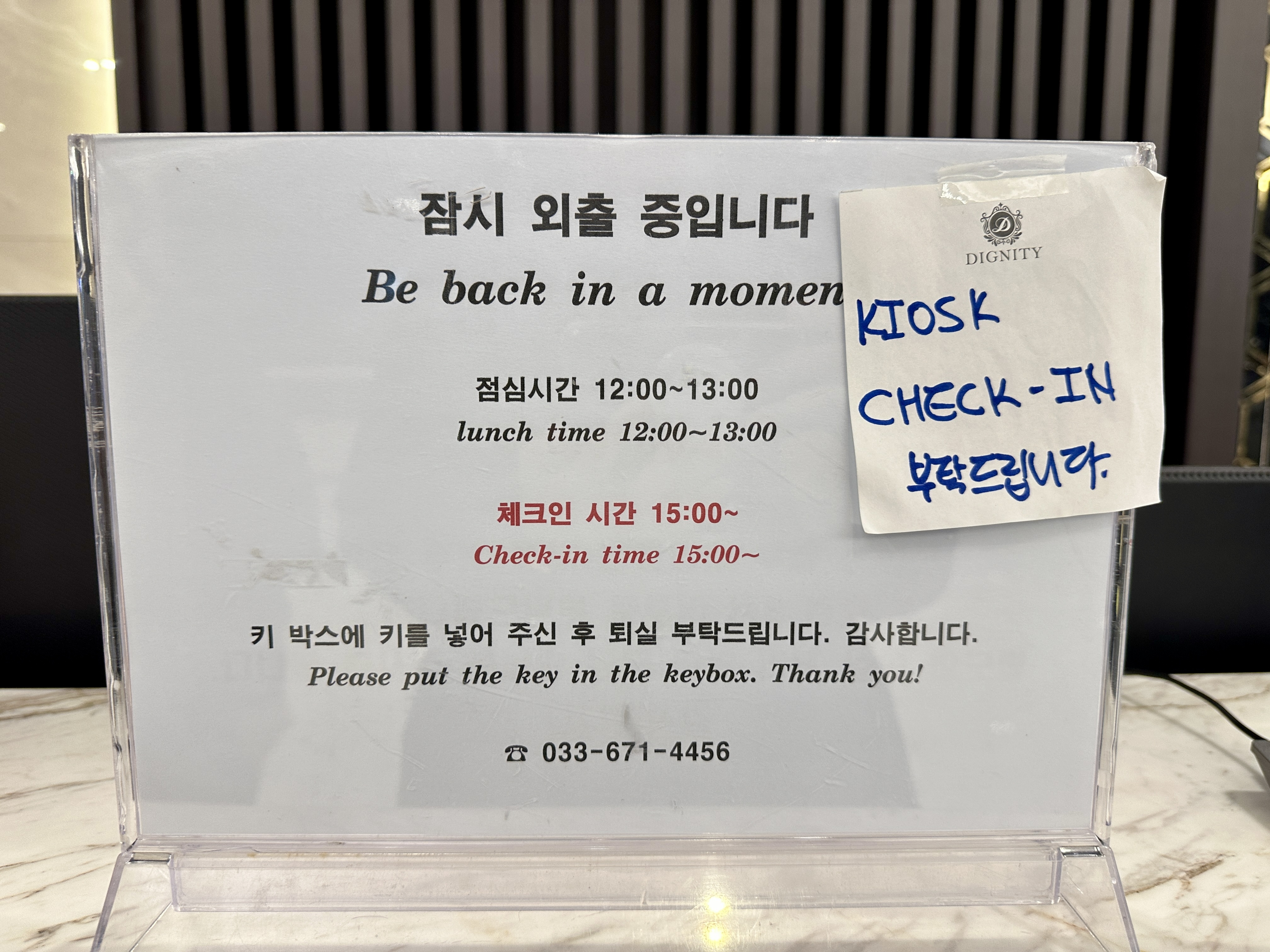 디그니티 호텔의 체크인 시간은 오후 3시부터이며 체크아웃 타임은 11시까지 였습니다.