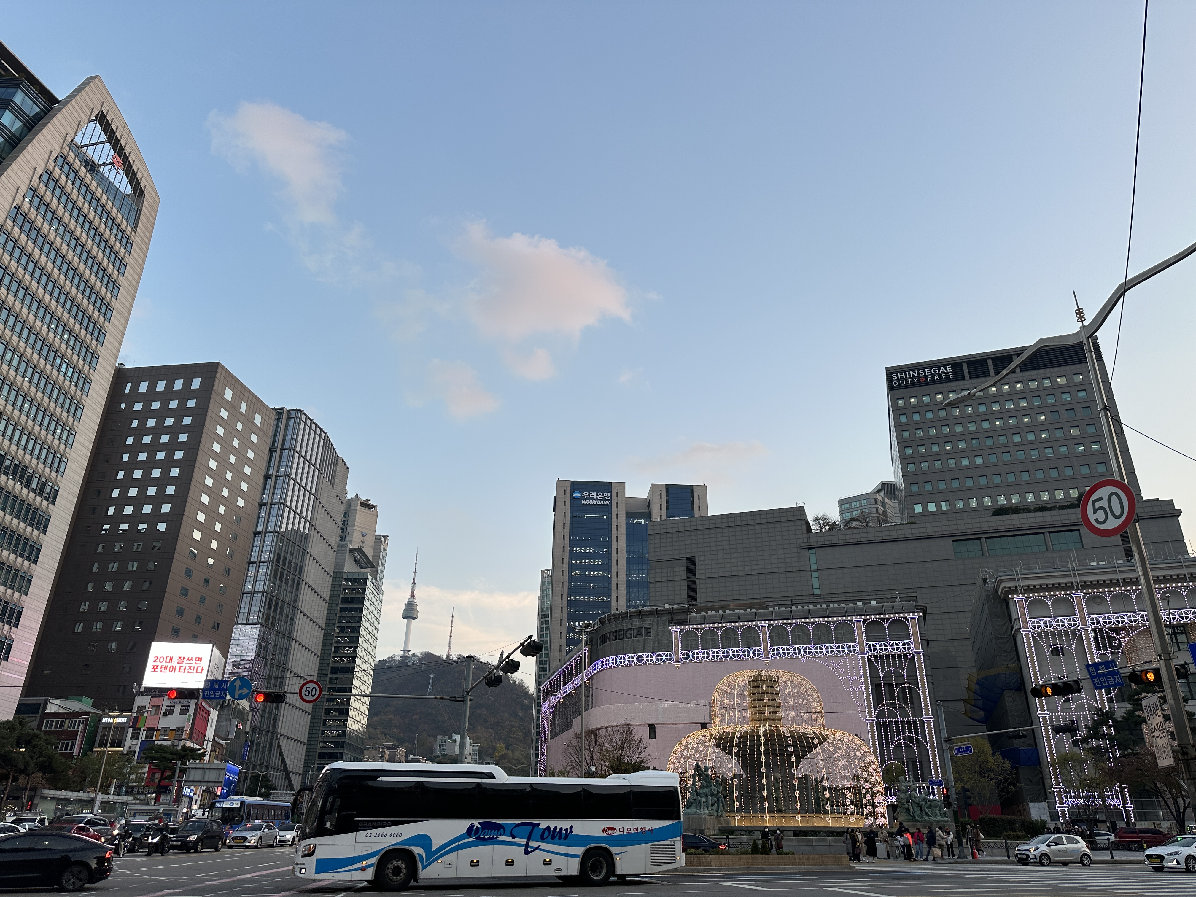 명동을 따라 롯데백화점 영플러스와 신세계 백화점까지, 퇴근하는 시민들과 쇼핑을 나온 외국인들까지 이곳의 야경에 매료되곤 합니다.