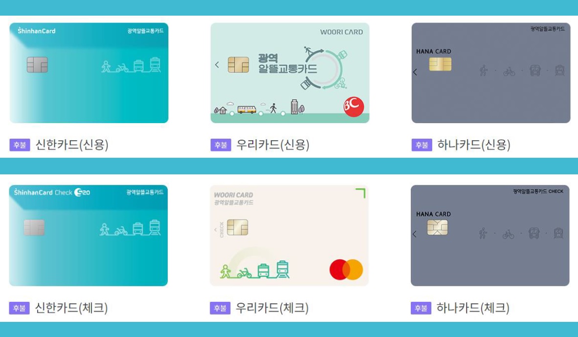 광역 알뜰교통카드는 3개의 카드사 총 6개의 카드가 발급되고 있다.
