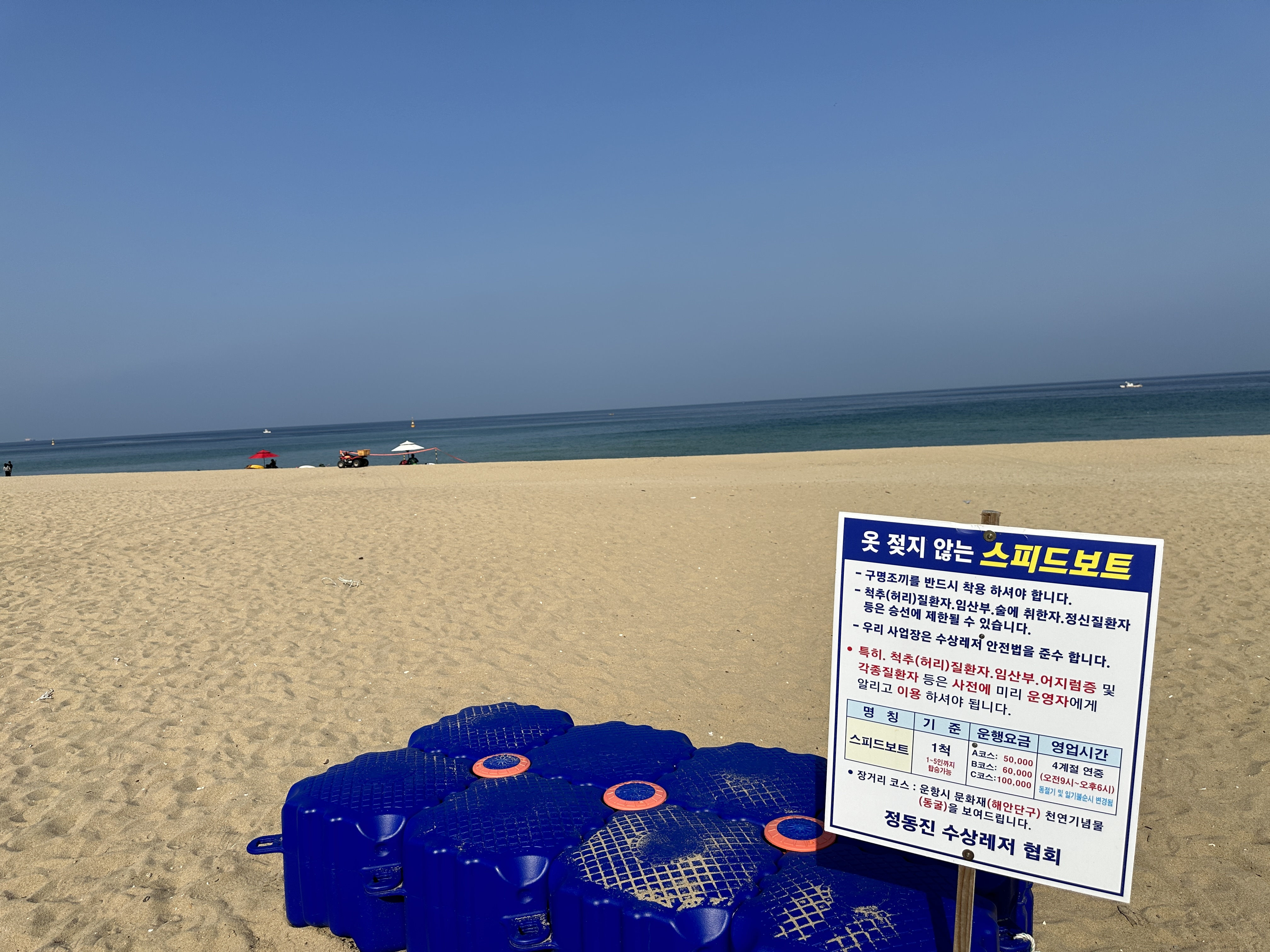 옷 젖지 않는 스피드보트는 1척에 1~5인 탑승 가능하며 코스별로 5만원에서 10만원의 요금을 받고 있습니다.