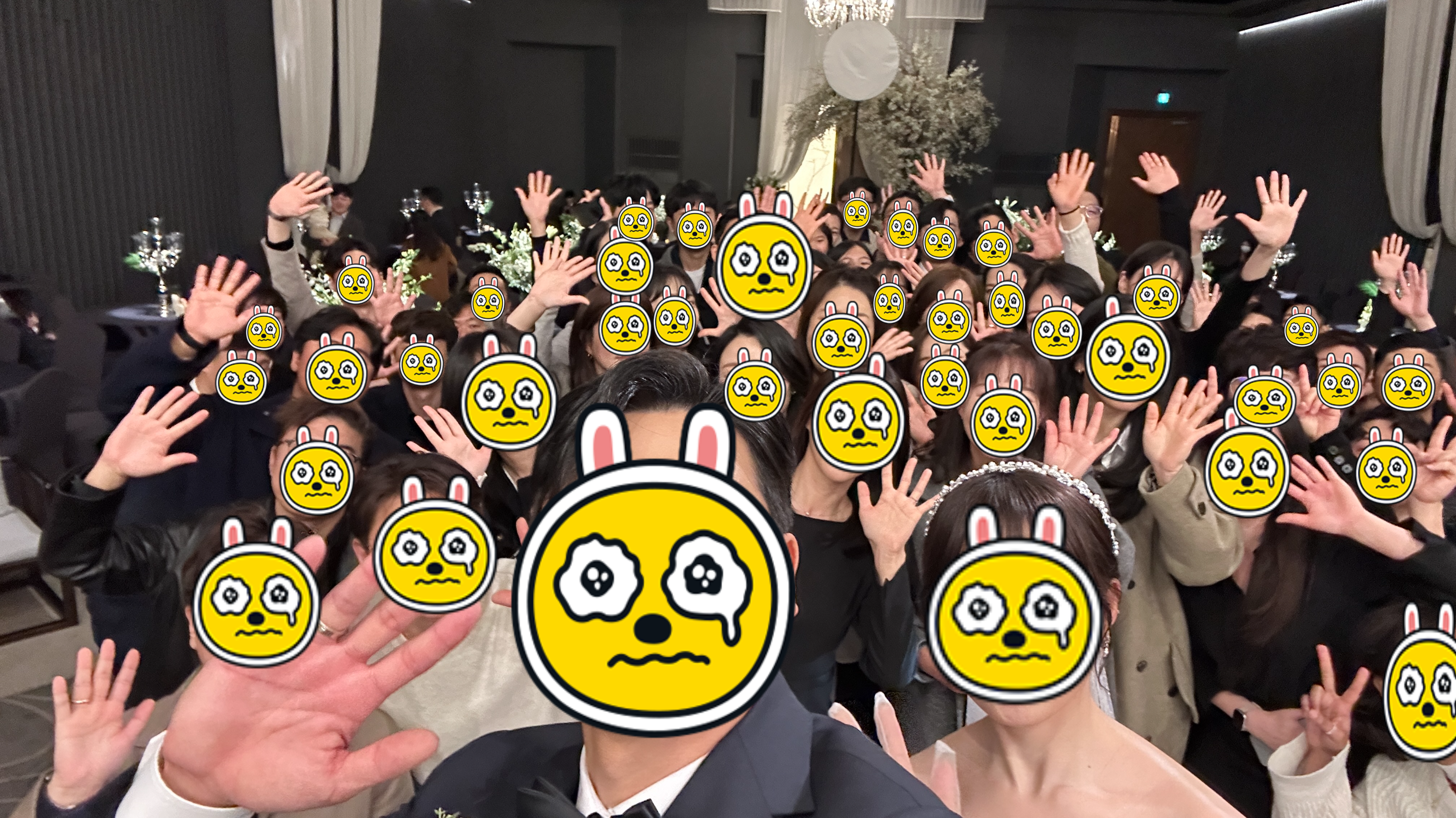 양가 가족 및 친지분들과 사진 촬영후 마지막으로 친구와 지인들까지 사진 촬영하니 약 1시간이 지났습니다.