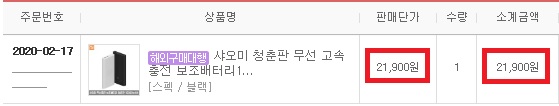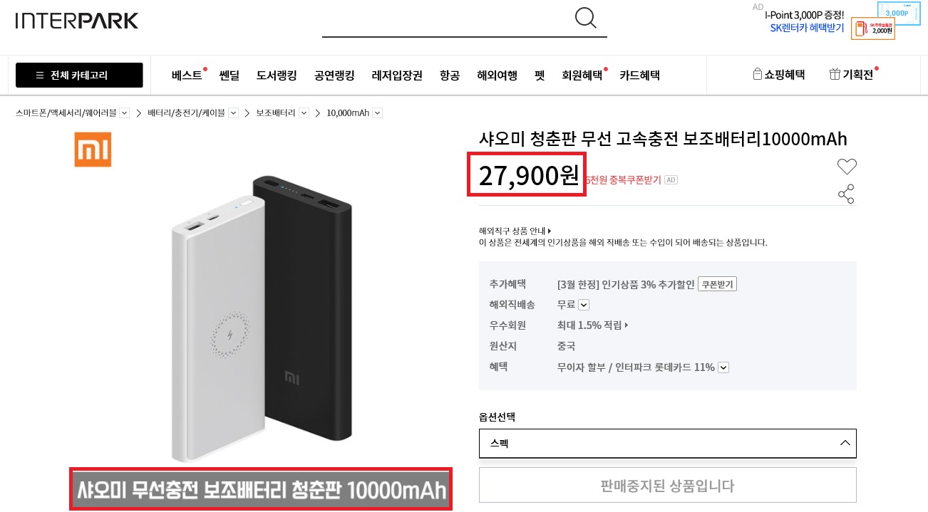 나는 지난 2월 17일 인생날을 통해 샤오미 무선충전 보조배터리 청춘판 10000mAh 을 구매했다.