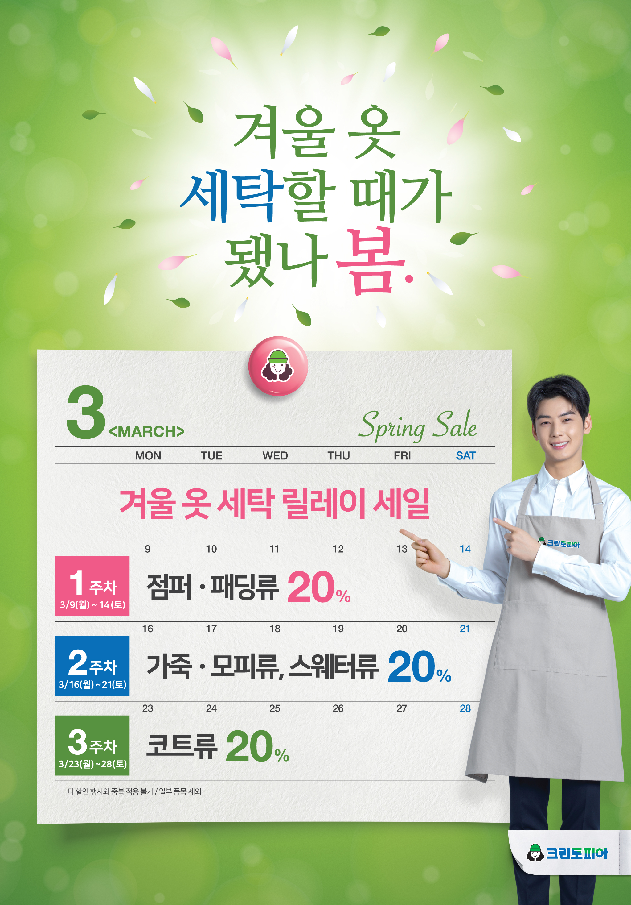 세일명 : 새봄맞이 겨울옷 세탁 3주 릴레이 세일