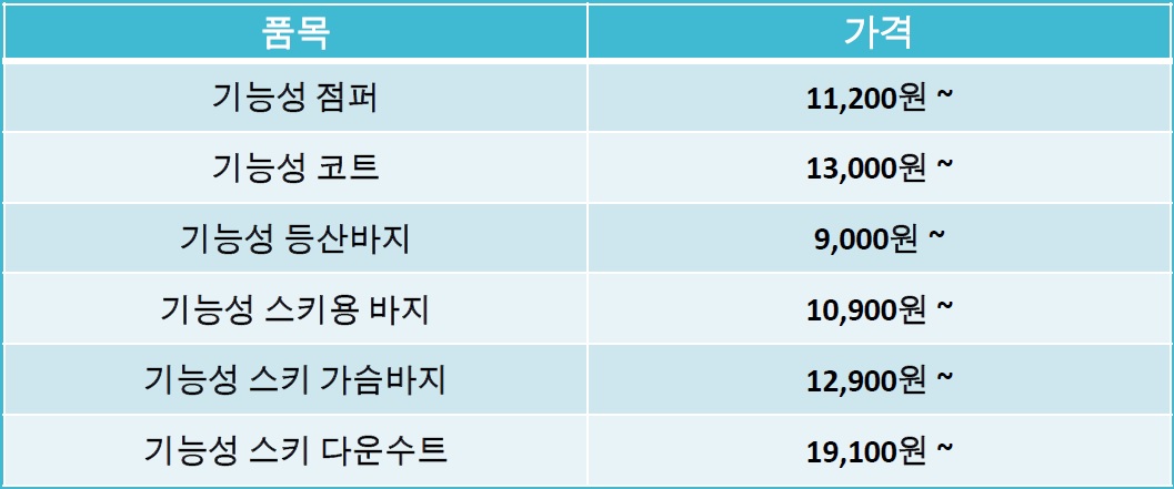 요새 아웃도어는 다 기능성제품이기에 품목마다 기능성이라는 제목이 붙어있다.