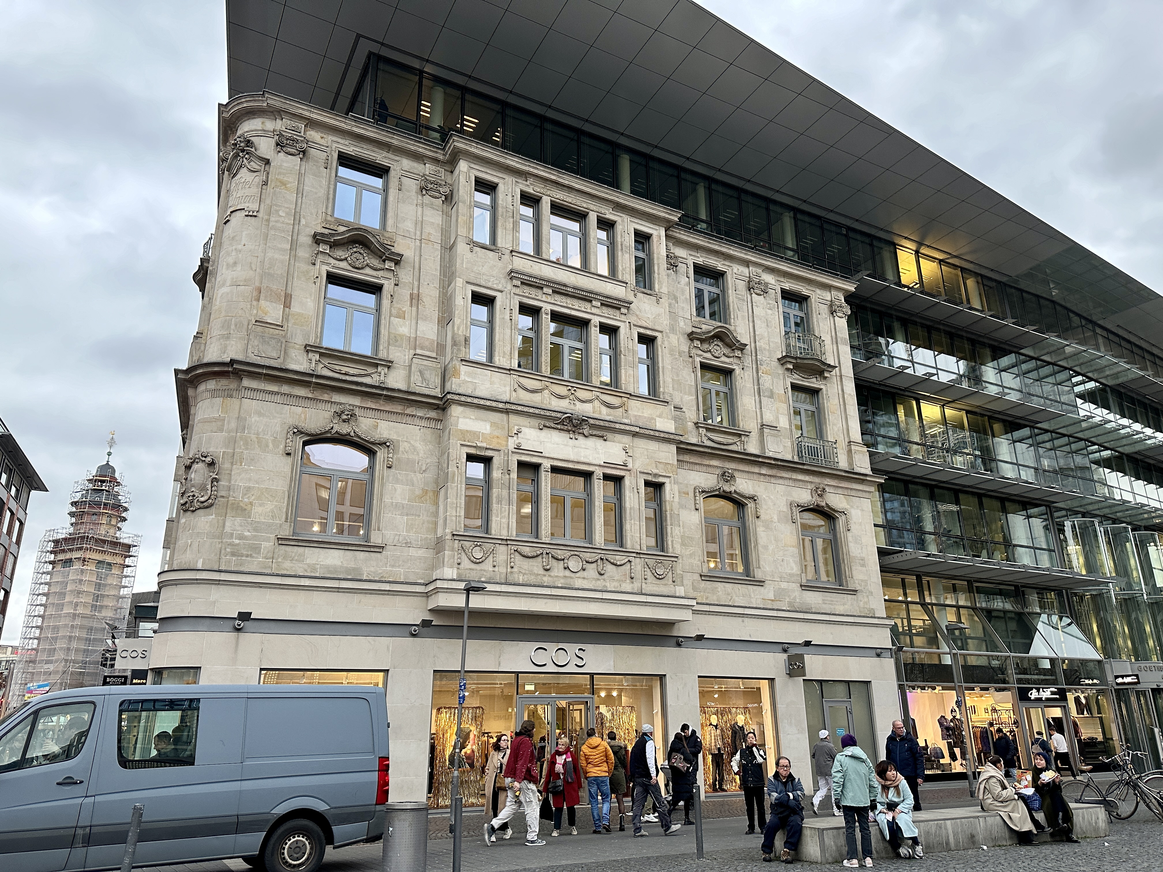 프랑크푸르트 차일거리는 하우프트바헤 북동쪽에 위치한 보행자 전용도로로 갤러리아 백화점과 유명 SPA 브랜드 매장들과 각종상점이 밀집한 프랑크푸르트 최대 번화가로 손꼽히는 곳입니다.