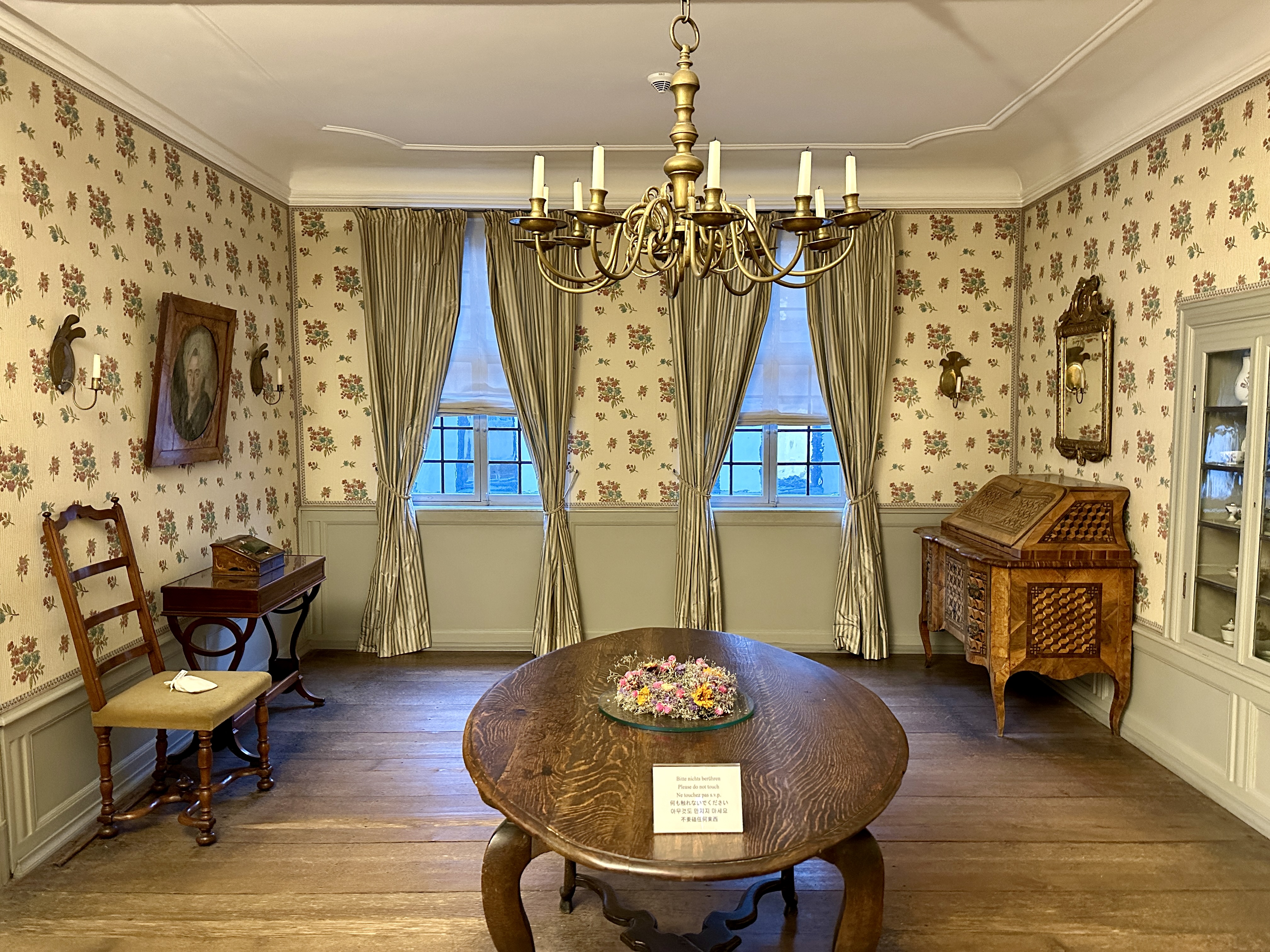 괴테하우스 지상층에는 복도와 노란방 또는 바이마르 방이라고 불리는 귀빈 영접실이 있습니다.