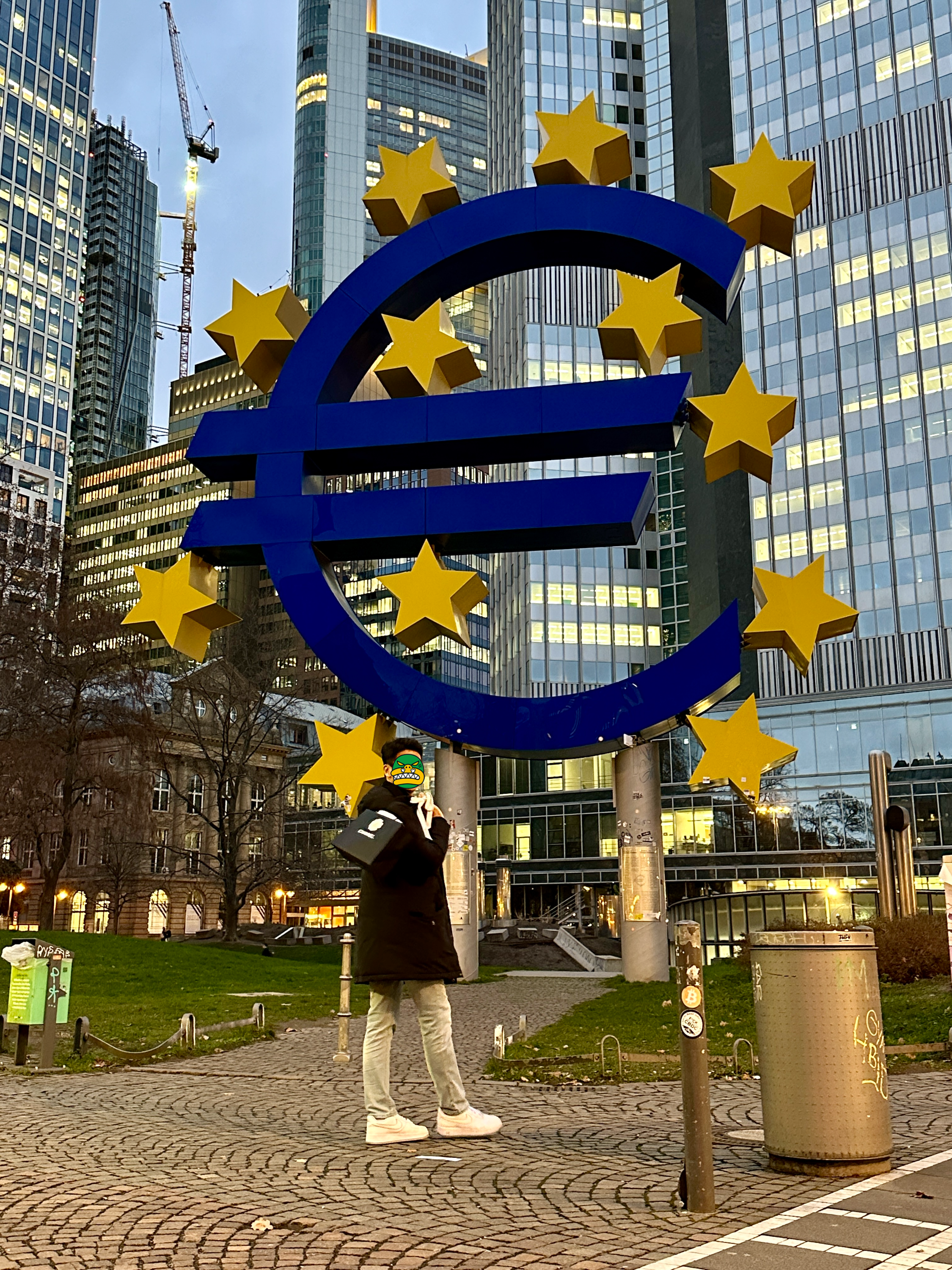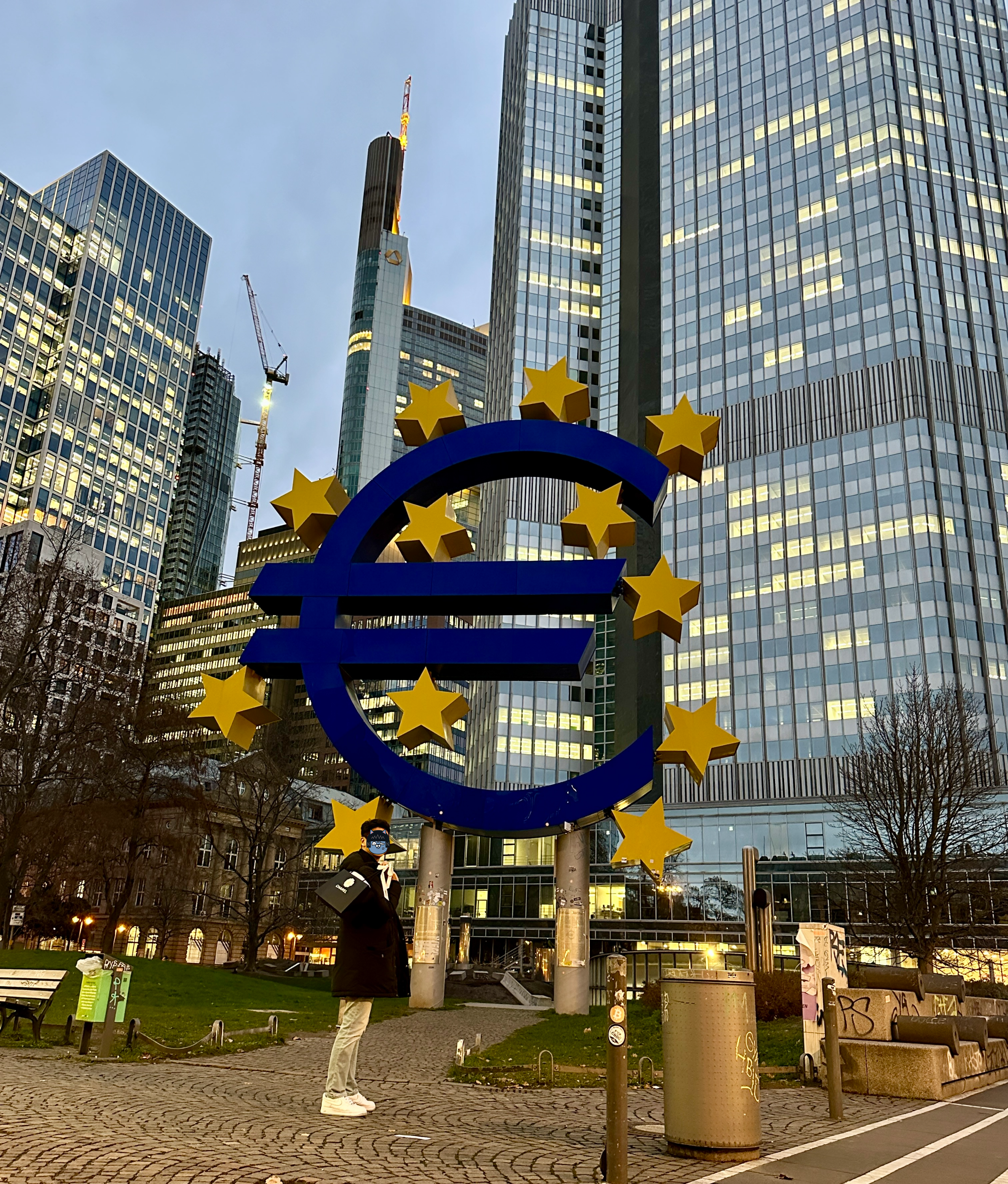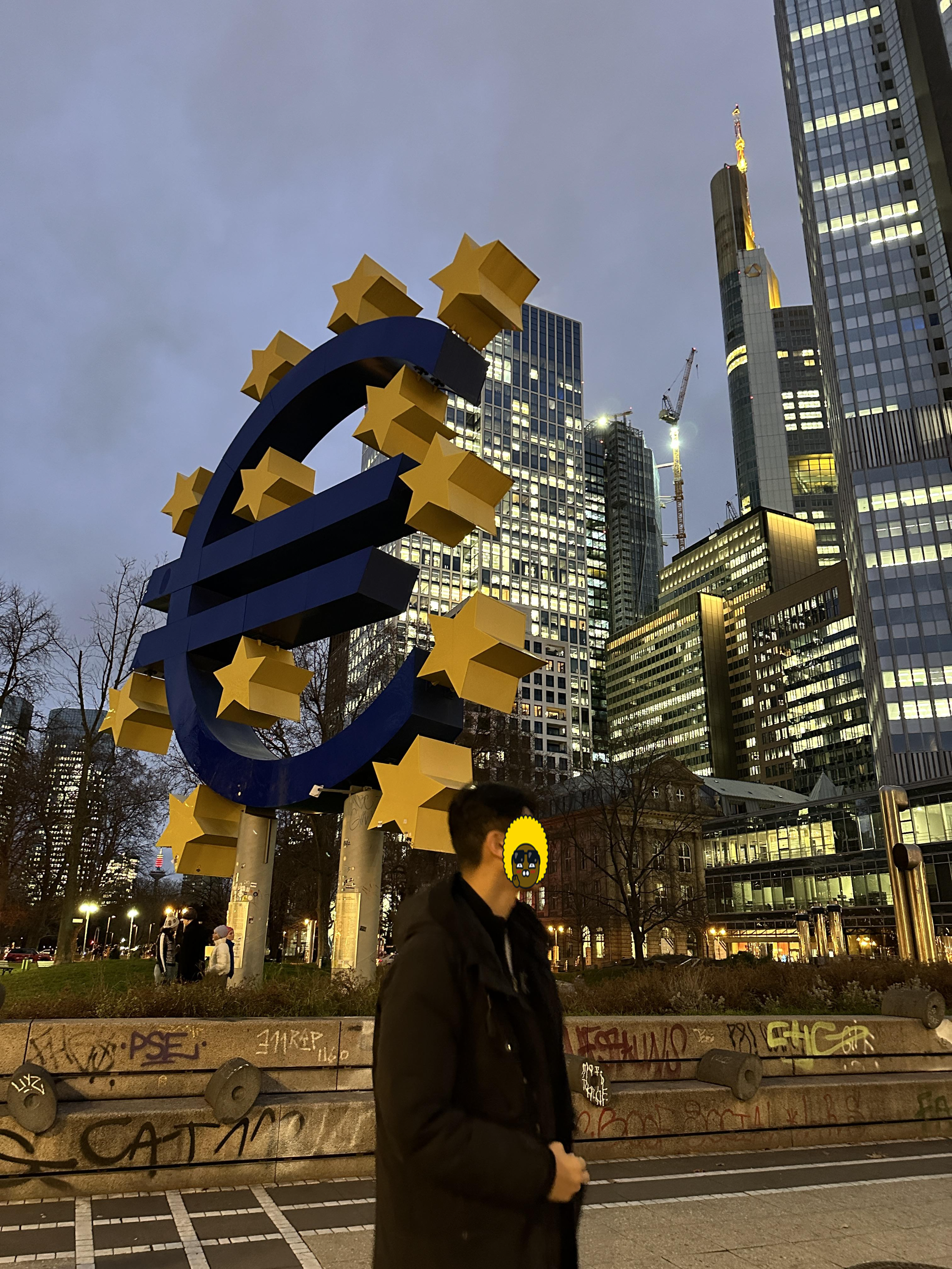 이 유로타워 앞 유로화를 상징하는 조형물에서 저희도 다른 관광객들 처럼 사진을 찍었습니다.