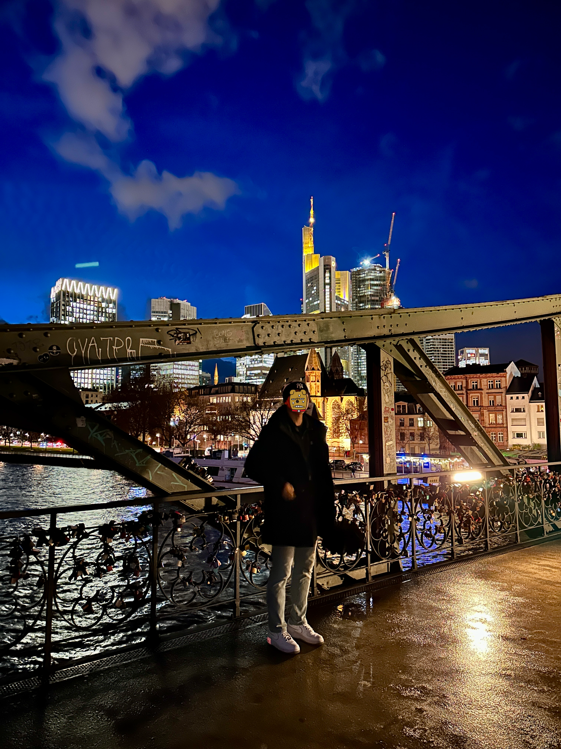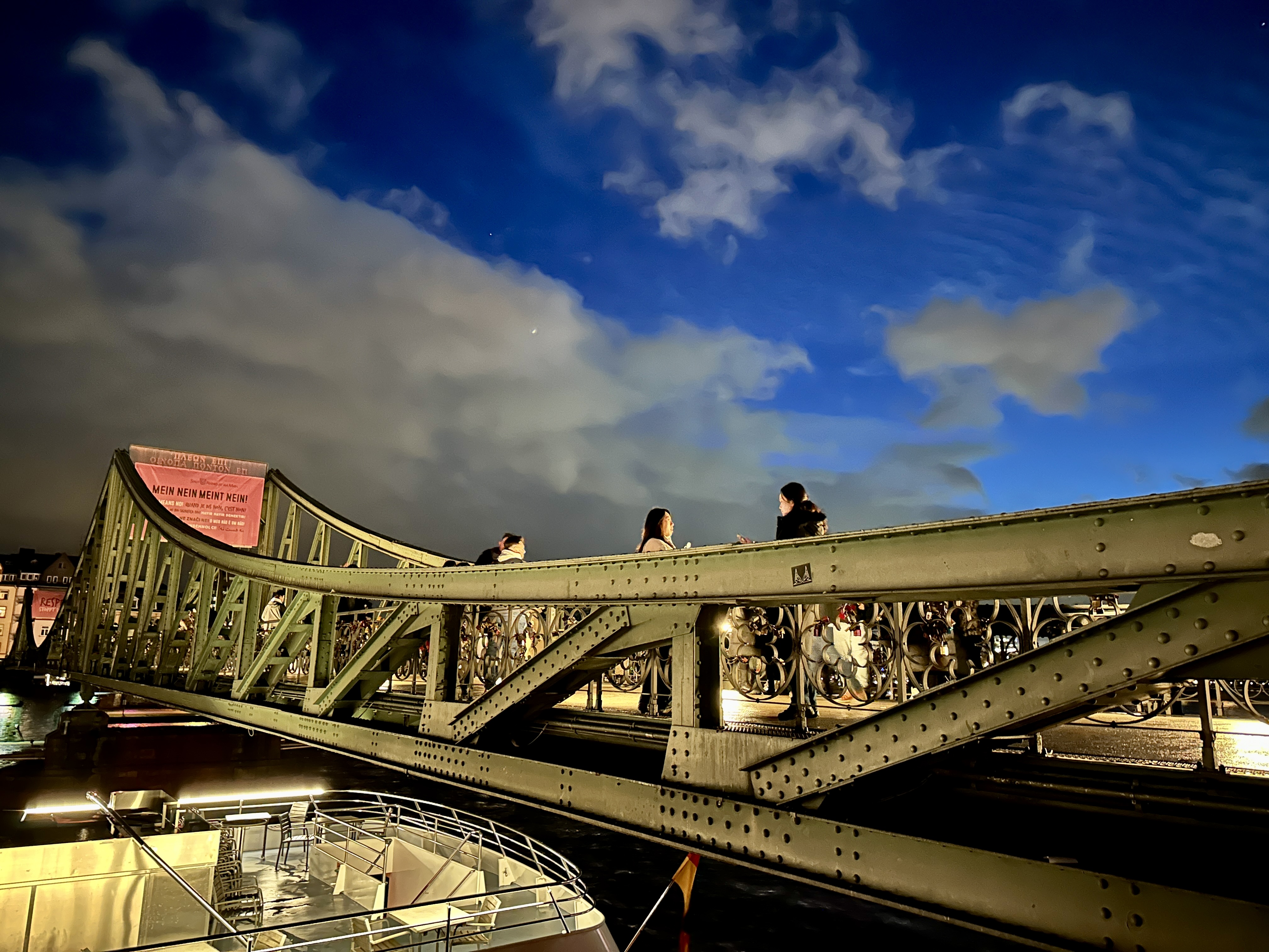 아이젤너 다리 위에서 바라보는 프랑크푸르트 대성당이 특히 더 아름답게 보였고, 다리 난간에 달아놓은 연인들의 사랑의 약속을 담은 사랑의 자물쇠가 길게 이어져 있어 더욱 야경을 아름답게 만들어 주고 있습니다.