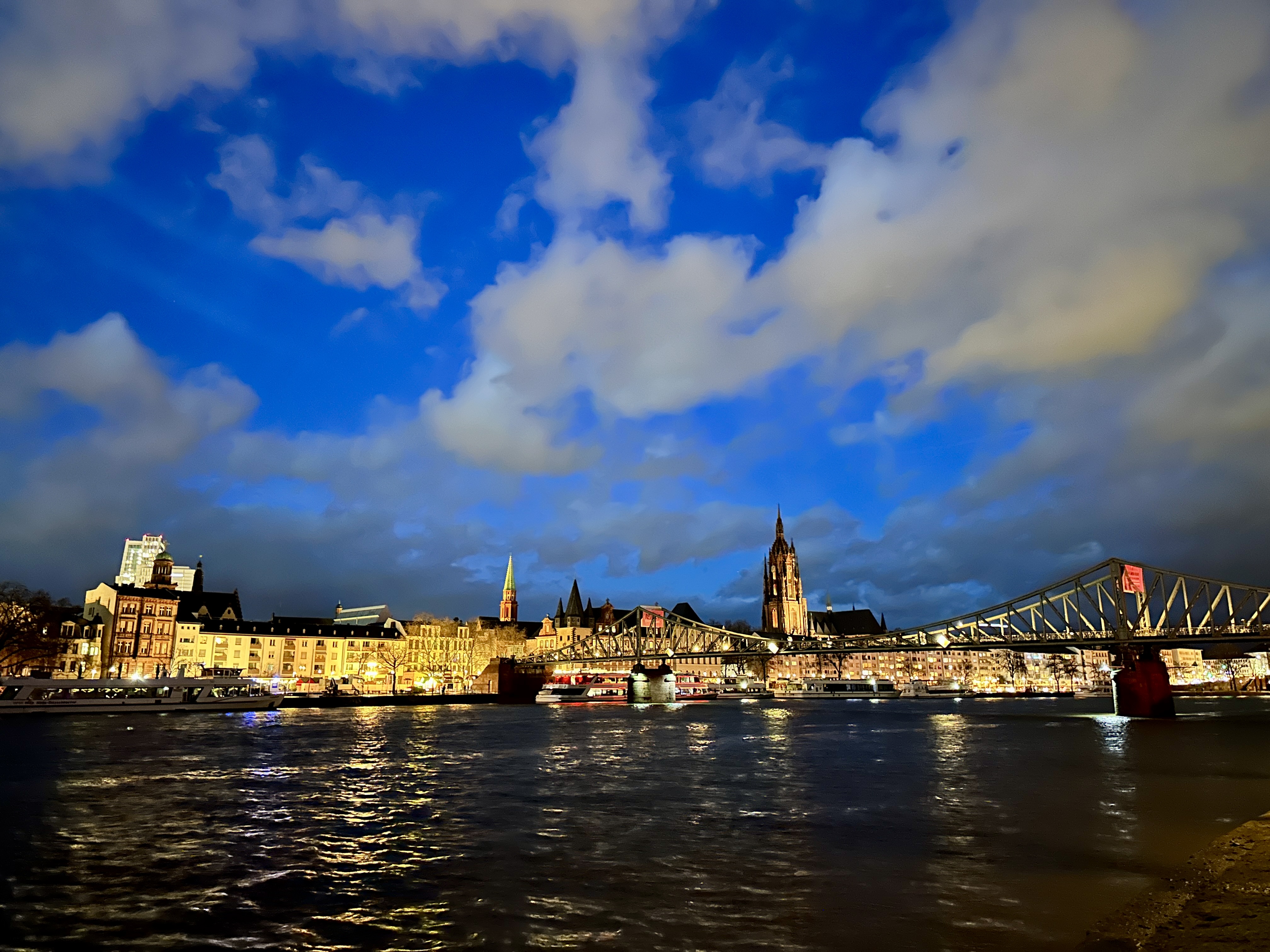 슈타델 미술관을 나와 뢰머 광장으로 가려면 암마인강을 건너야 하는데, 아이젤너 다리를 통해 강을 건너면 아주 아름다운 프랑크푸르트의 야경을 마주할 수 있습니다.