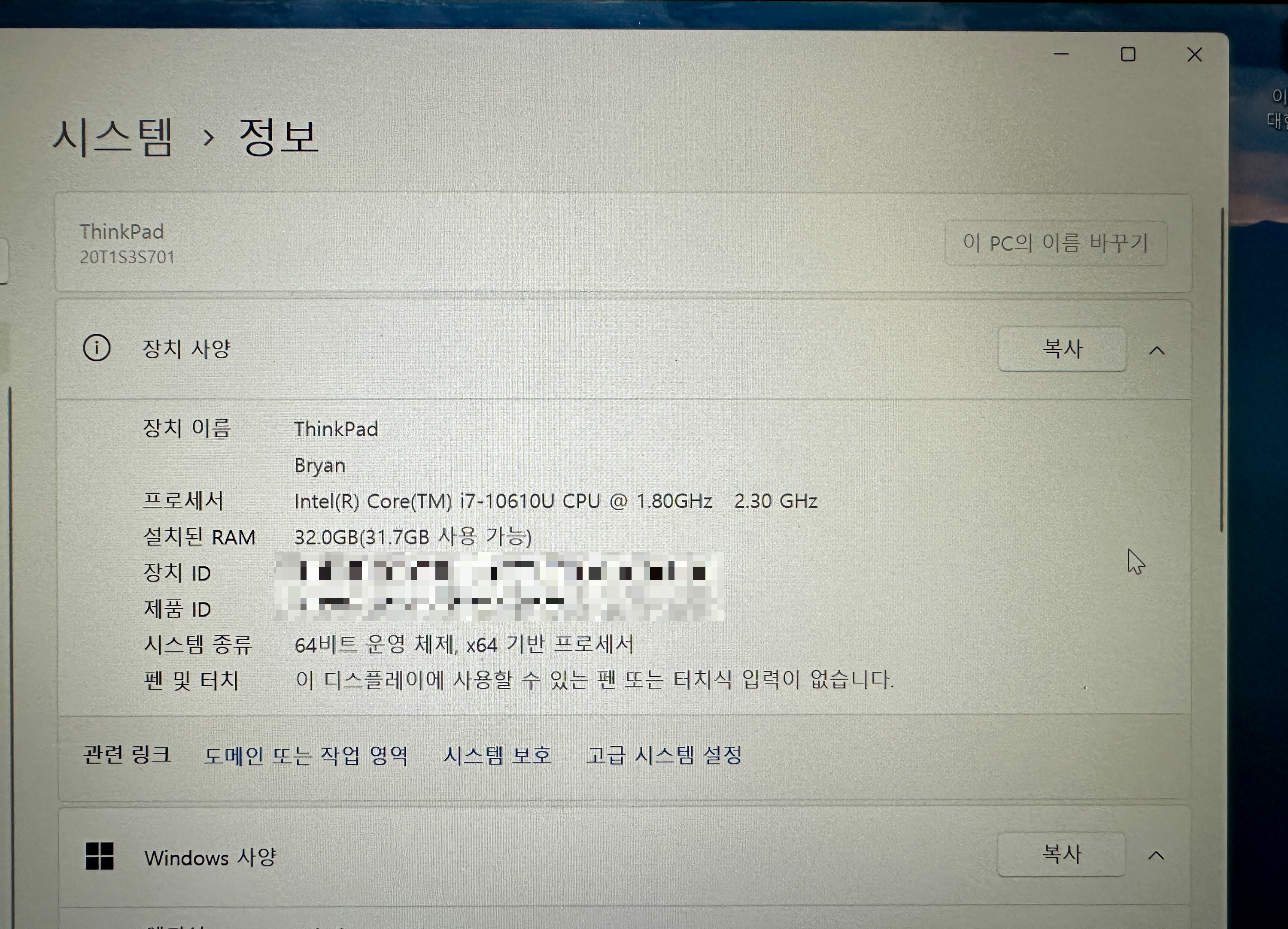 3. 프로세서 : Intel i7-10610U