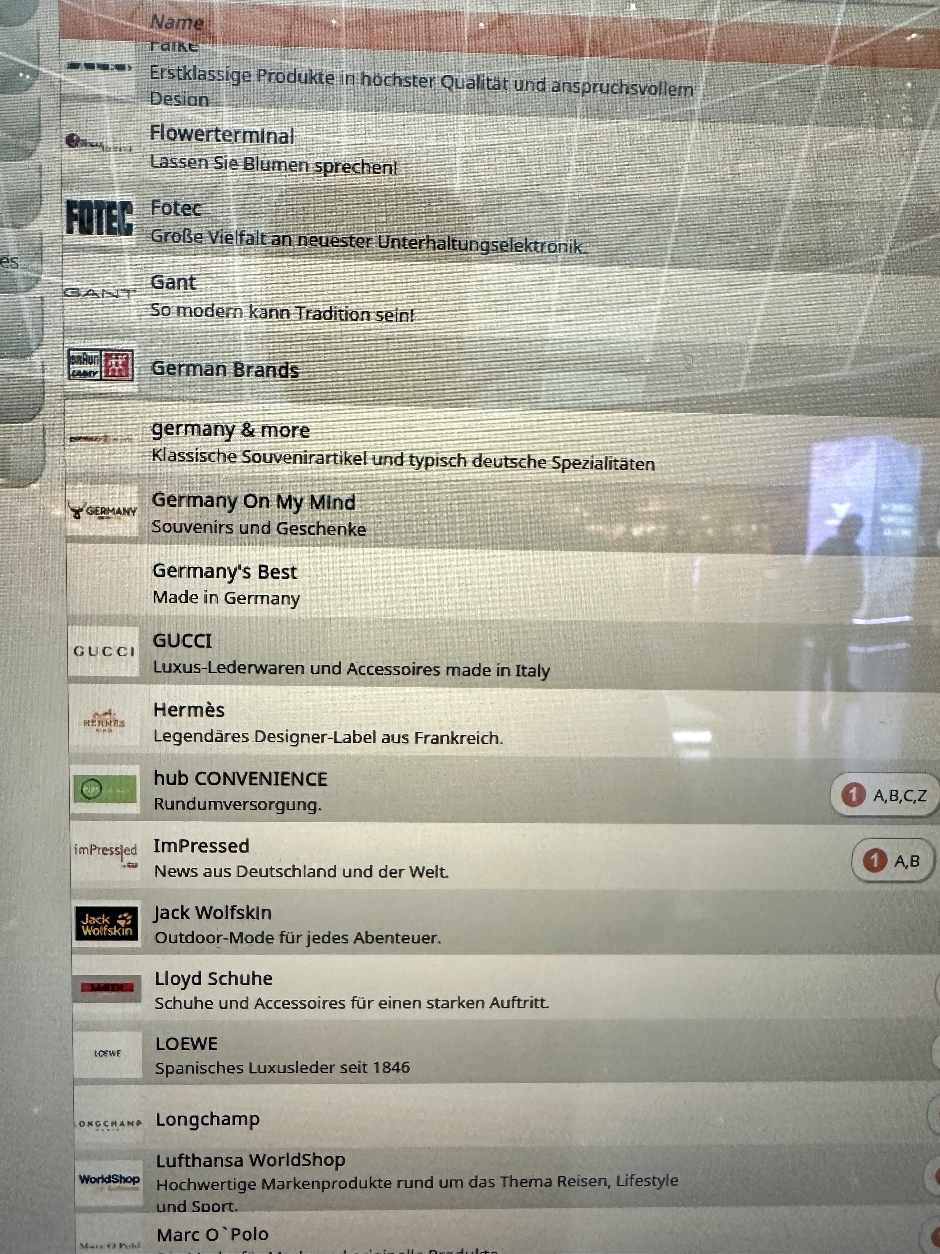 구찌와 에르메스 등 명품 매장들도 입점해 있었는데, 이 명품 매장들을 이용하기 위해서는 국제선 승객들만 이용할 수 있는 게이트에 위치하고 있어서 독일 국내선을 이용한 저는 접근할 수 없었습니다.