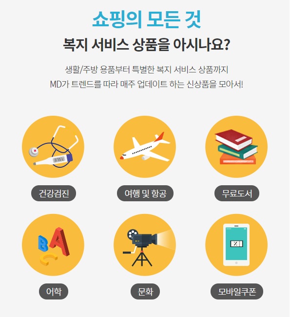건강검진부터 여행및항공/무료도서/어학/문학/모바일쿠폰까지 다양한 상품을 취급하고 있다.