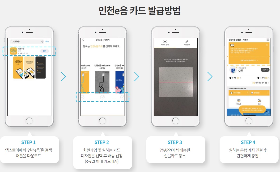 인천e음 카드는 인천 지역경제 활성화를 위해 전국 최초로 만들어진 모바일앱과 선불카드가 결합된