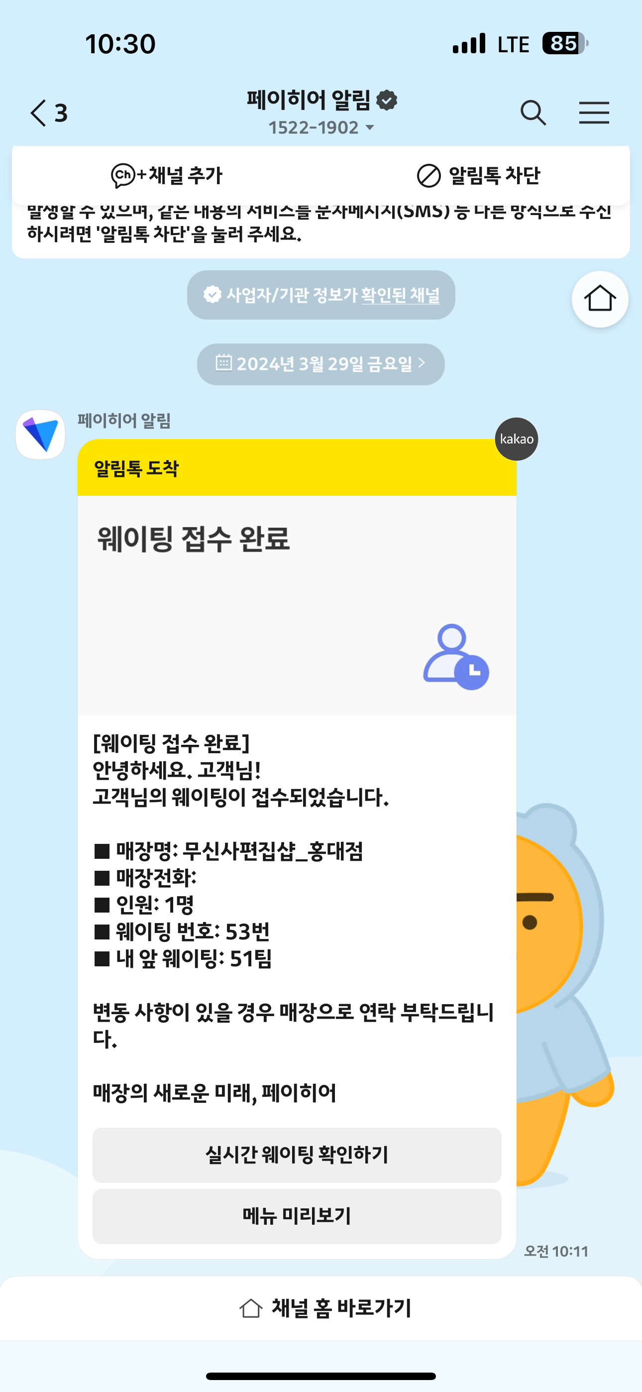 그럼 내 순서가 왔을 때 매장에 오면 되는 편리한 시스템으로 첫 오픈런을 경험했습니다.