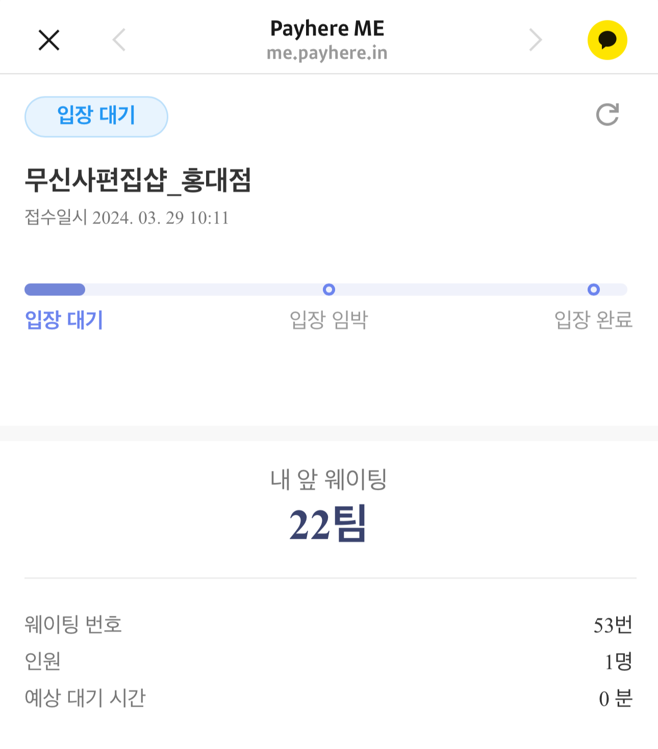 그럼 내 순서가 왔을 때 매장에 오면 되는 편리한 시스템으로 첫 오픈런을 경험했습니다.