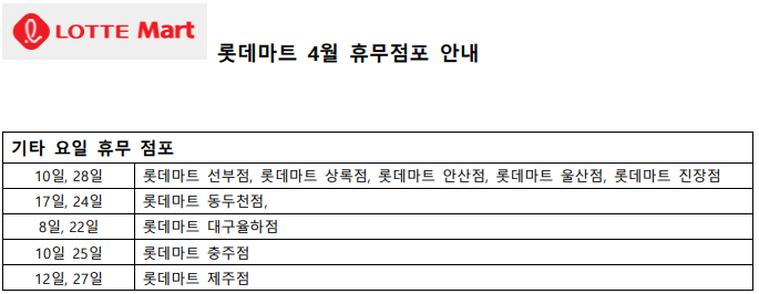 4월 롯데마트 휴무일 - 기타요일