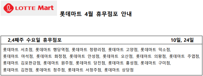 4월 롯데마트 휴무일 - 2,4째주 수요일