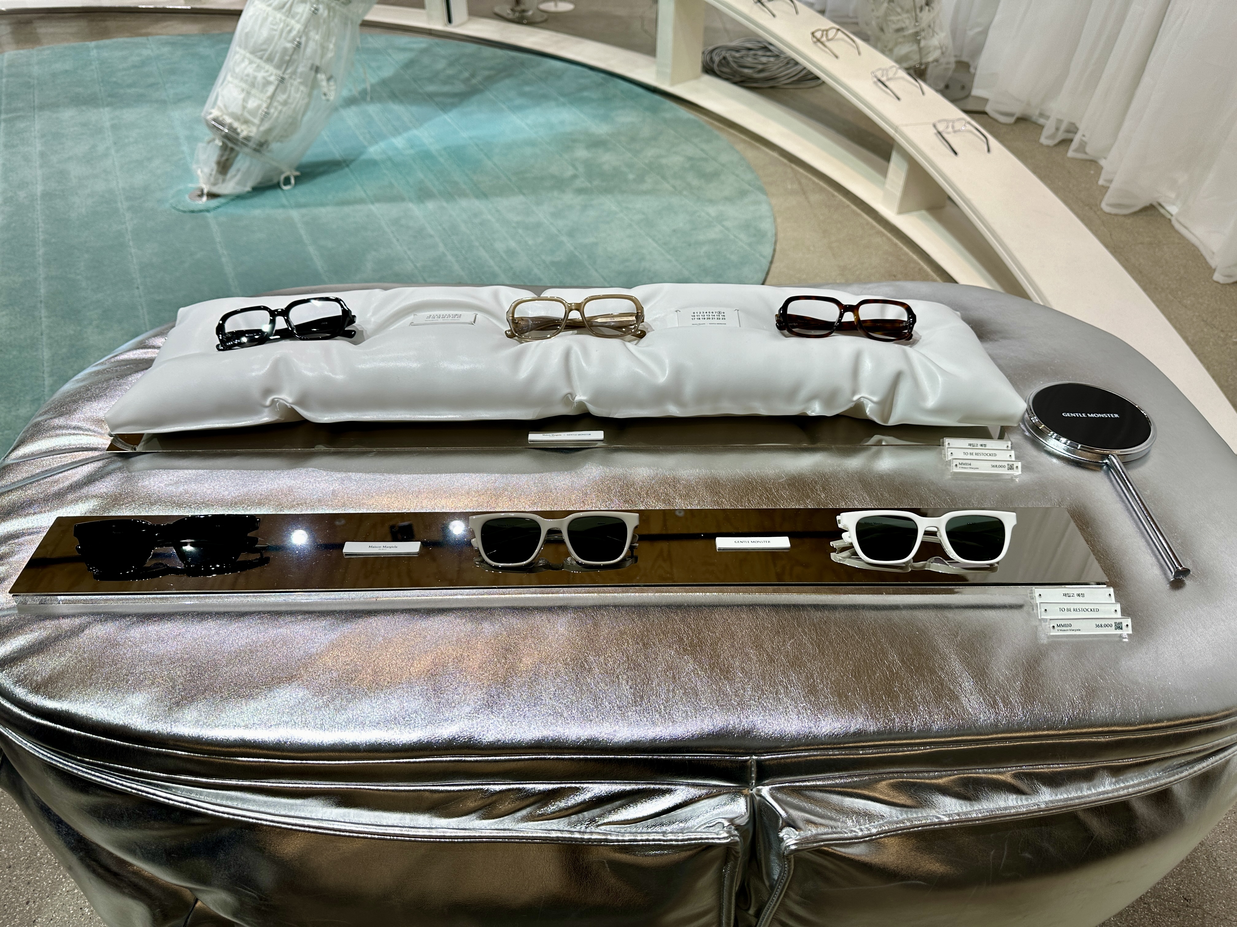 마침 압구정 젠틀몬스터 매장에 가보니 젠틀몬스터와 메종마르지엘라의 콜라보 제품들이 전시되어 있어서 잘 구경하고 왔는데, 아쉽게도 주요 제품들은 모두 품절이고 4월중에 리스탁된다는 소식을 듣고 왔습니다.