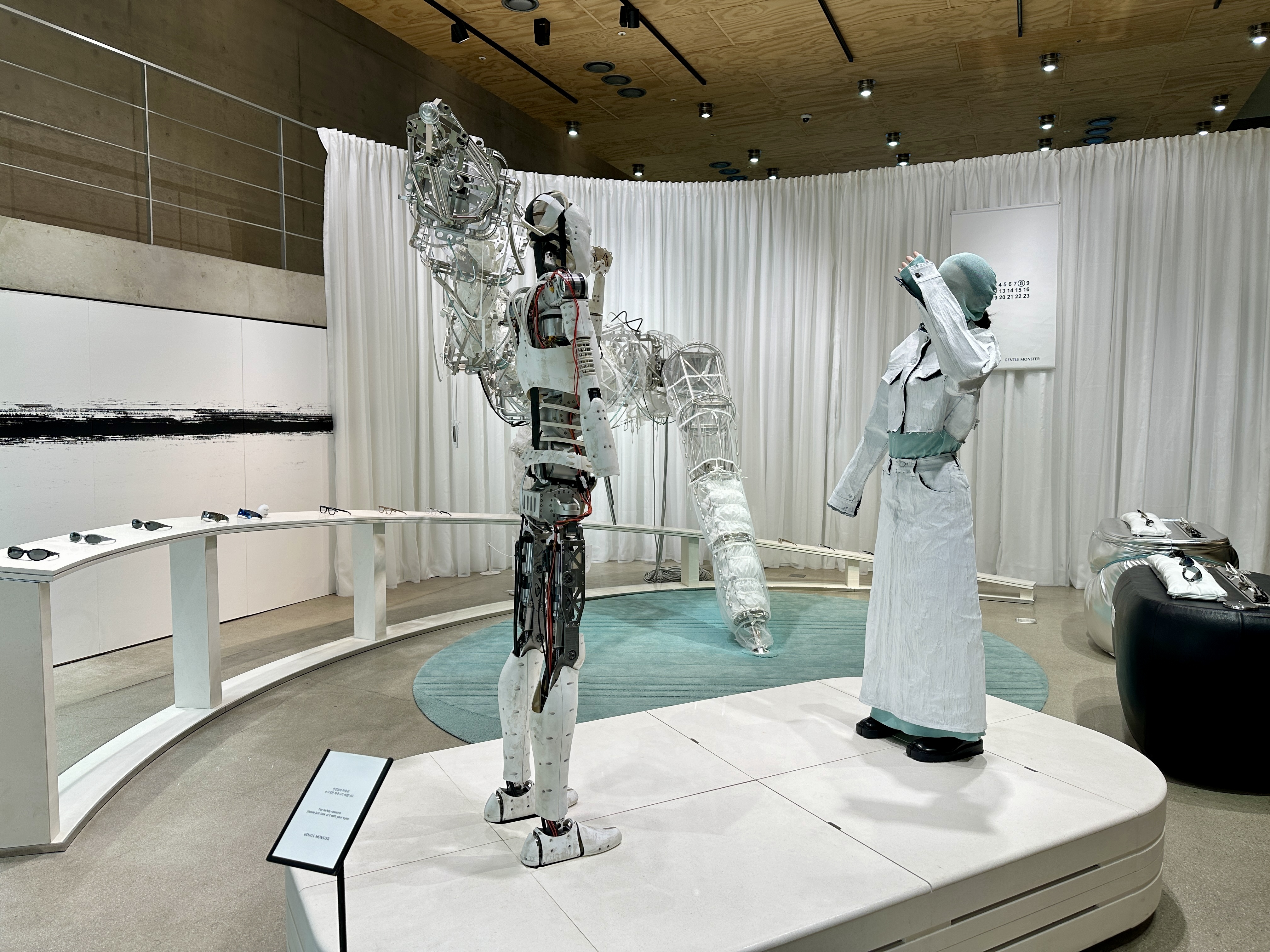 이번 메종마르지엘라와의 콜라보에서도 하우스도산 매장 가운데에 두 로봇을 세워놓고 공상과학적인 이미지를 형상하며 또 한번 젠틀몬스터스러운 인테리어를 완성했습니다.