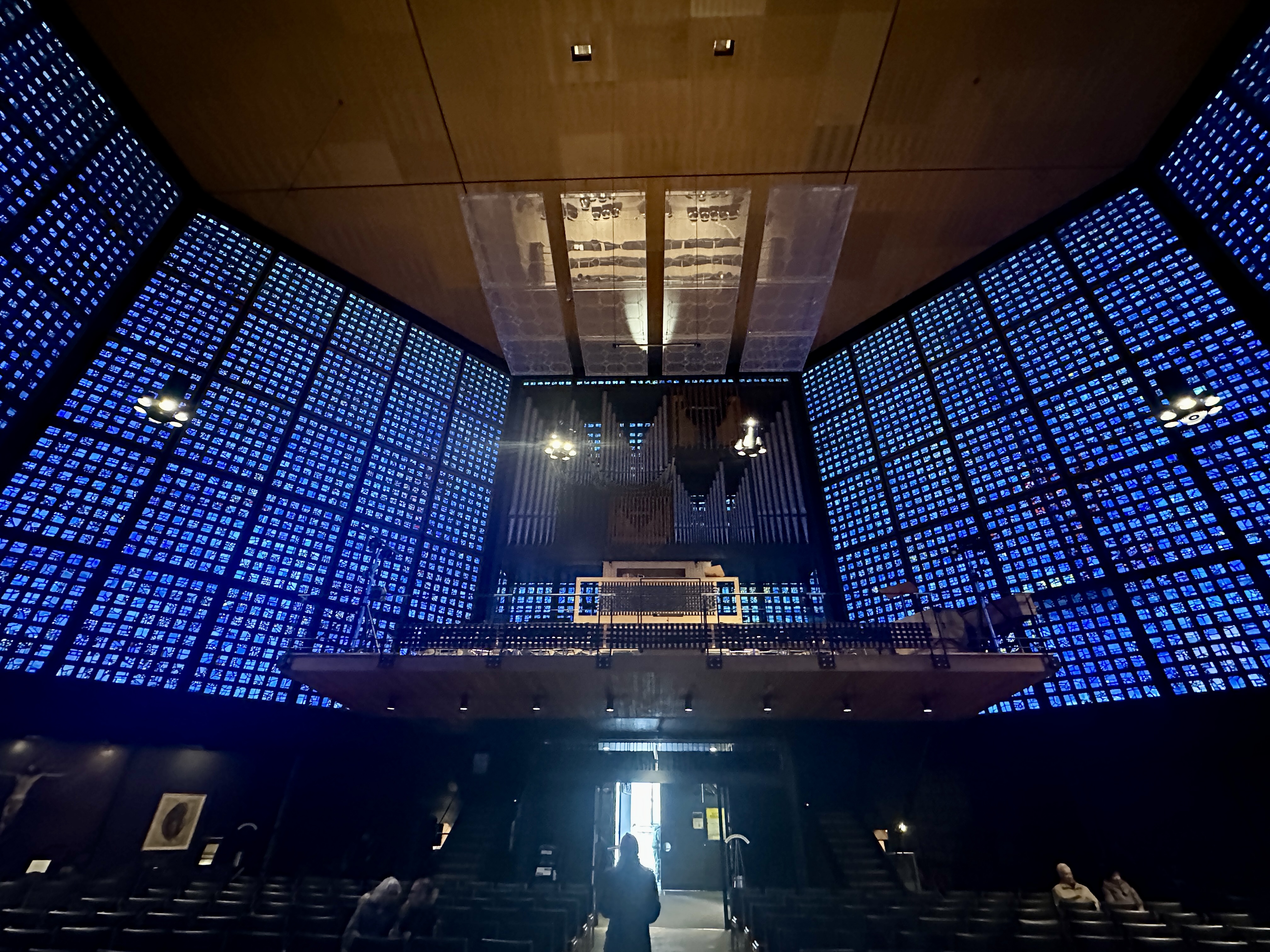 카이저 빌헬름 교회의 하이라이트라고 할 수 있는 스테인드글라스는 본당 뒤쪽의 예배당 건물에 있습니다.
