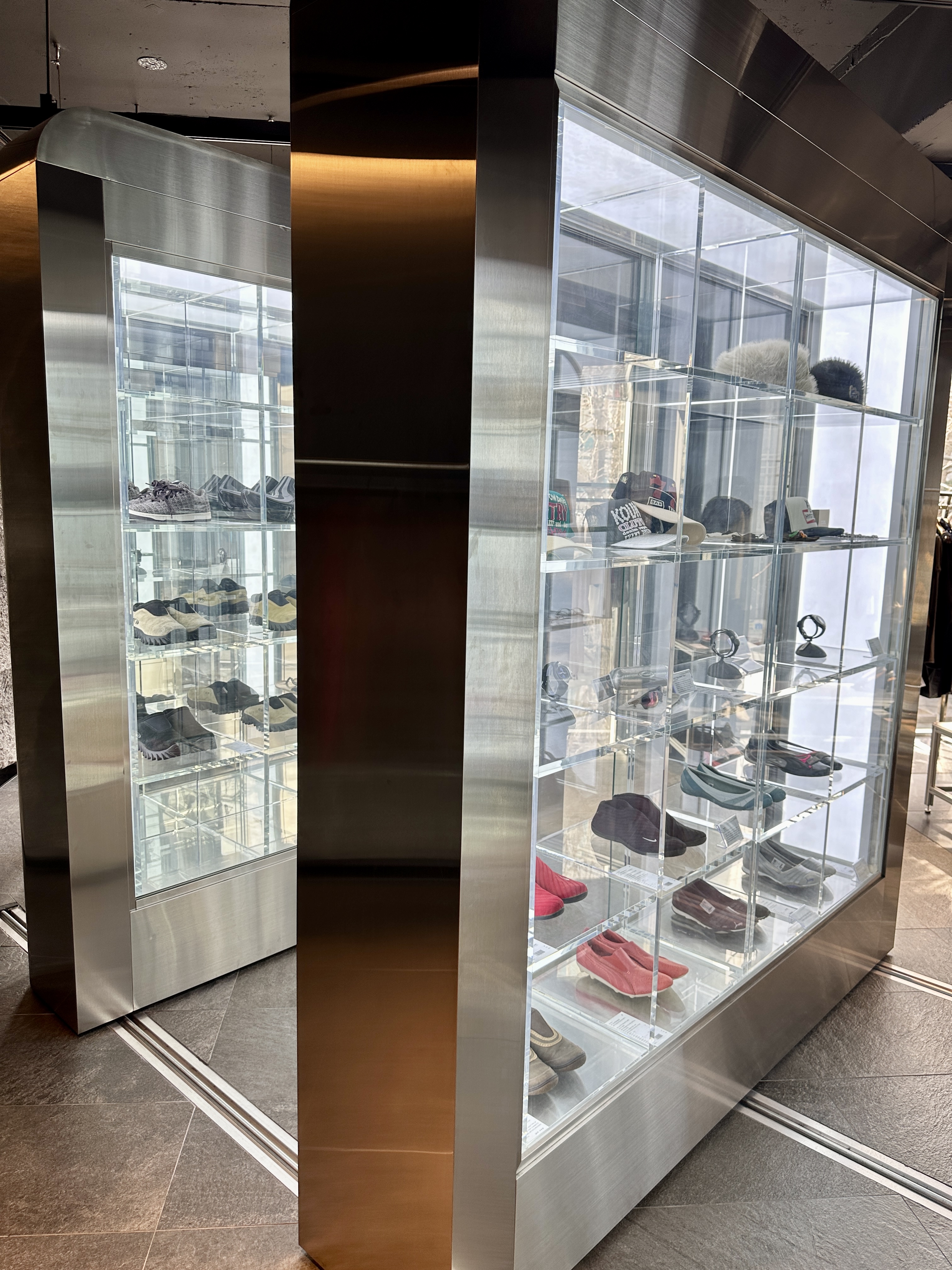 유리창 안에 칸칸이 명품들이 들어가 있는 인테리어 자체가 무척이나 화려했습니다.