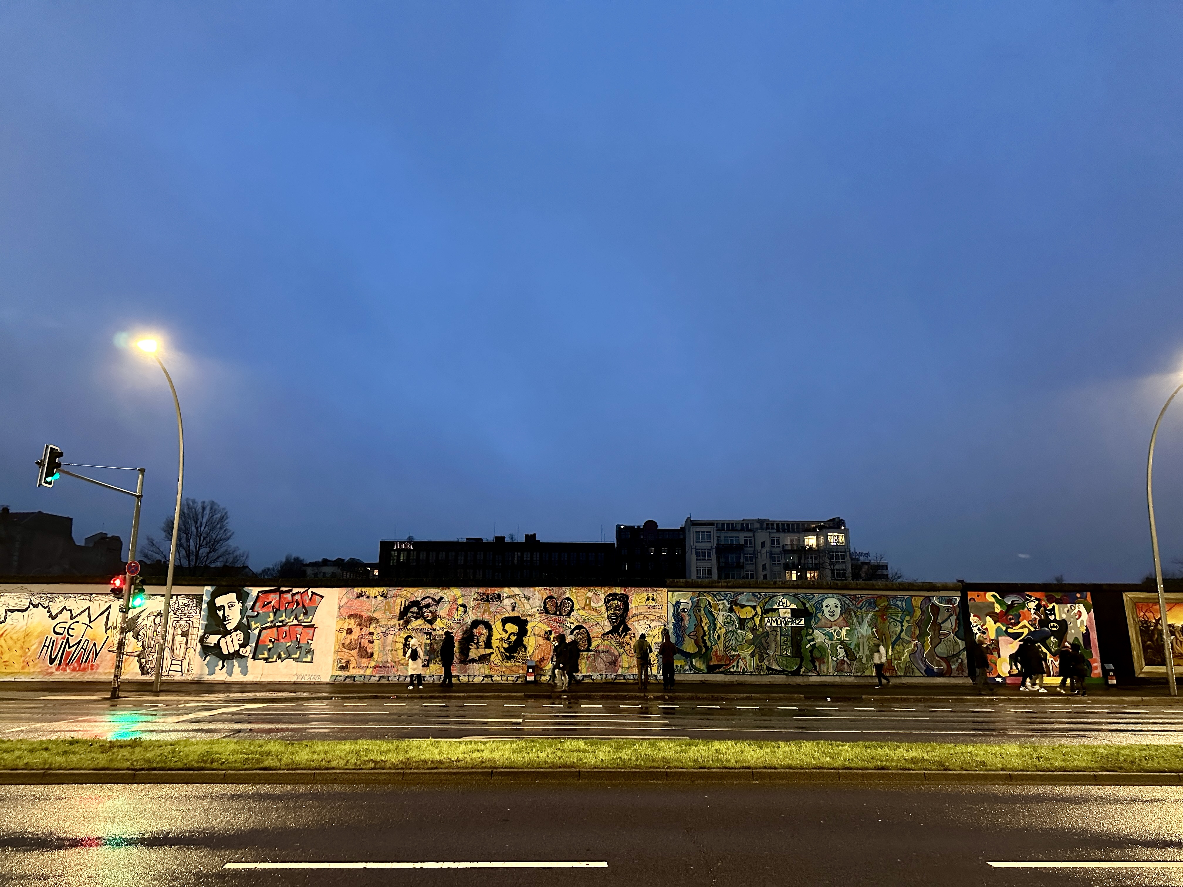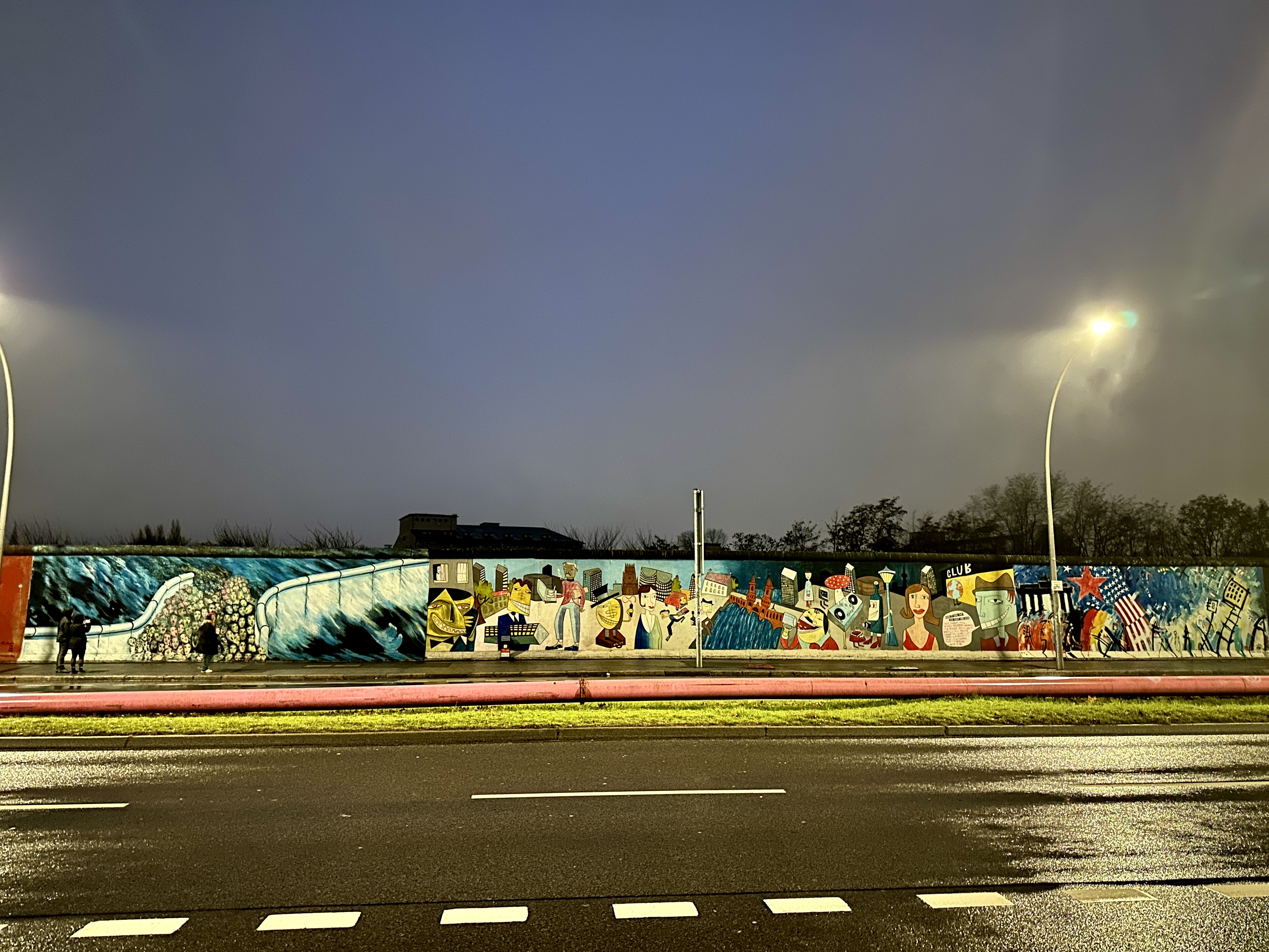 이스트사이드 갤러리는 베를린 동부 프리드리히샤인에 있는 야외 전시장으로 1.3km 에 이르는 벽에 야외 벽화가 전시되어 있는 베를린 대표 관광지 중 한 곳입니다. 베를린 장벽이 무너지고 1990년에 세계 각국 21개의 나라에서 예술가 118명이 베를린으로 와서 통일과 평화 그리고 전쟁을 반대하는 주제로 대형 그림을 110개를 그렸다고 합니다.