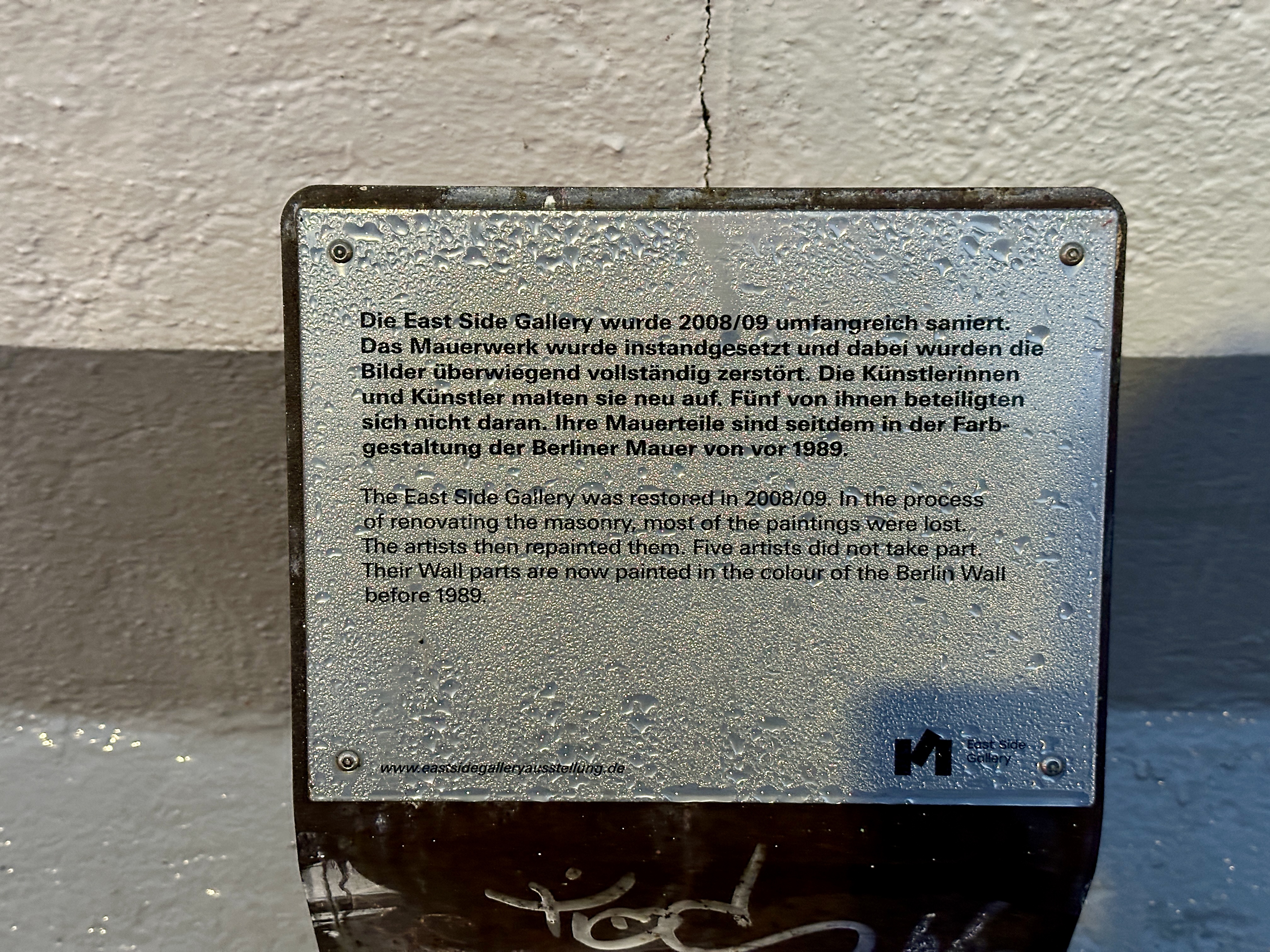 덕분에 이스트사이드 갤러리는 세계에서 가장 긴 야외 미술관이 되었으며, 장벽에 그린 벽화 역시 세계에서 가장 긴 미술작품이 되었습니다. 2009년에는 대대적으로 복원 작업을 진행했지만 야외라는 특성 때문에 훼손은 피할 수 없었다고 합니다.