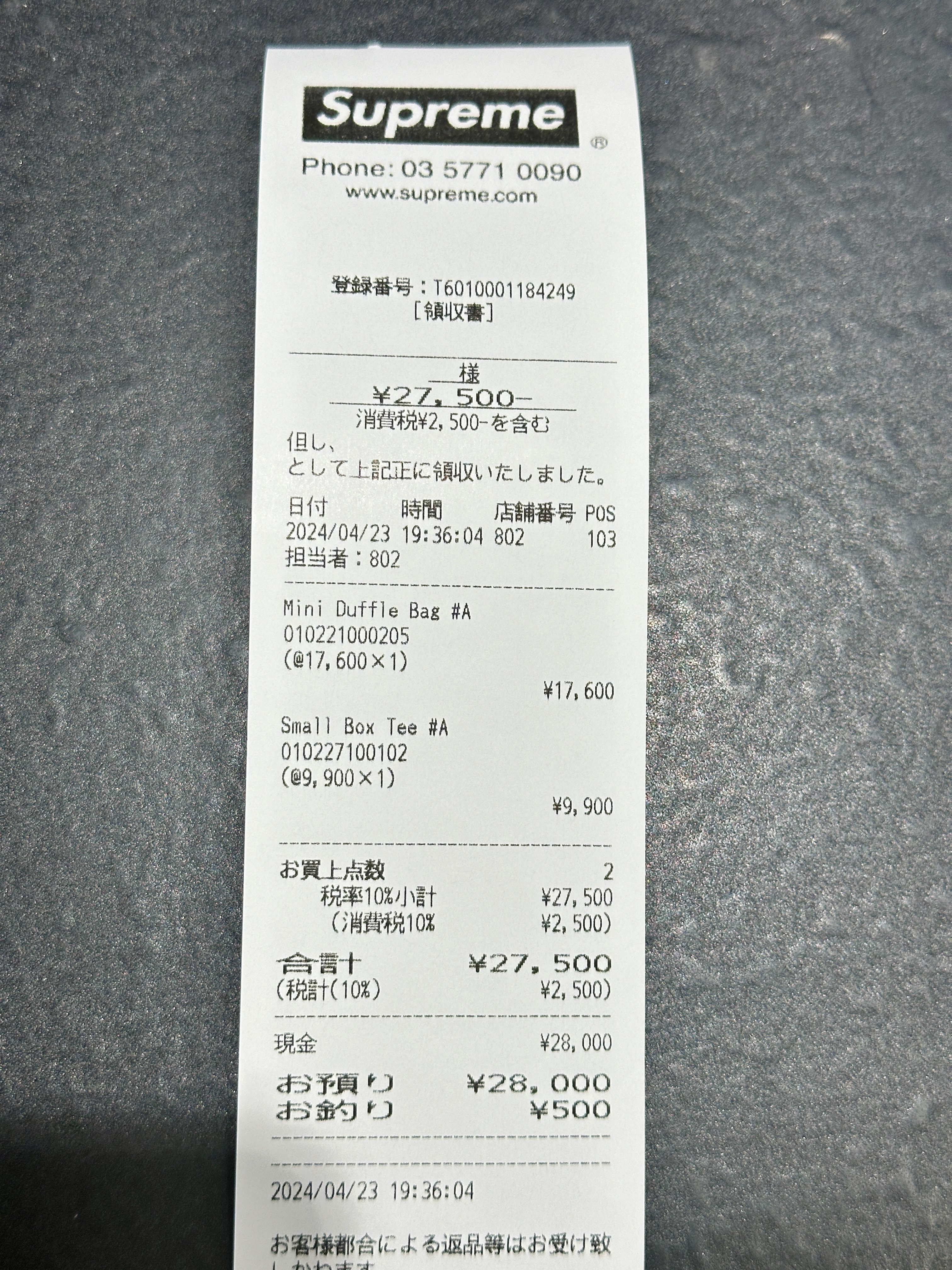 모든 도쿄 슈프림 매장이 그렇듯 매장 내부 사진촬영은 안되고, 일부 품목에 대해서는 사진을 찍어도 제지하지 않았습니다. 하라주쿠 슈프림에서는 미니 더플백과 스몰박스 흰색 티셔츠를 구매했습니다.