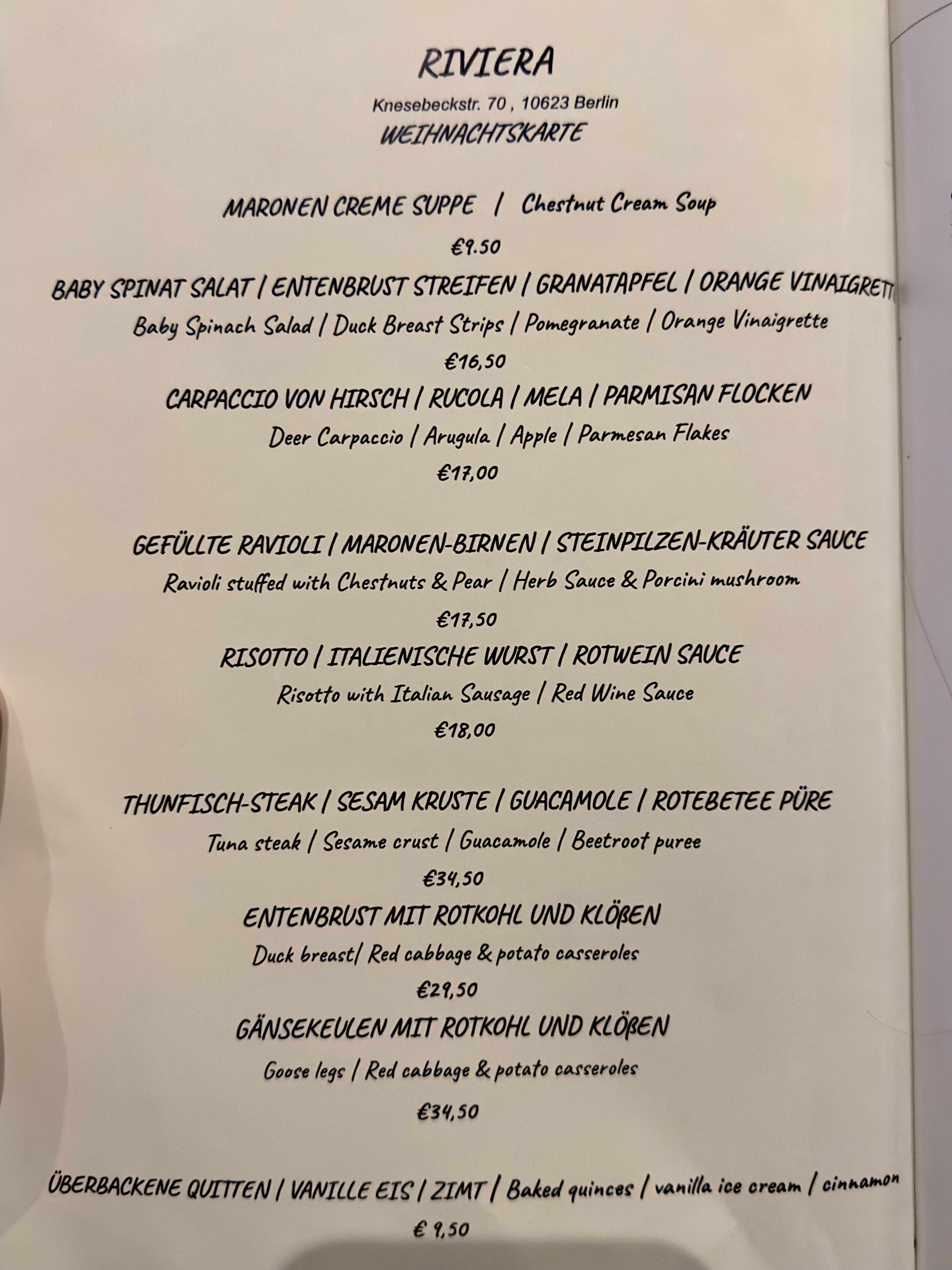 결혼하고 처음으로 보내는 크리스마스라서 베를린에서 분위기도 좋고 맛이 좋은 식당을 찾다가 숙소인 쿠담거리 근처에 있는 Rivera 라는 곳을 알게되어 다녀왔습니다.