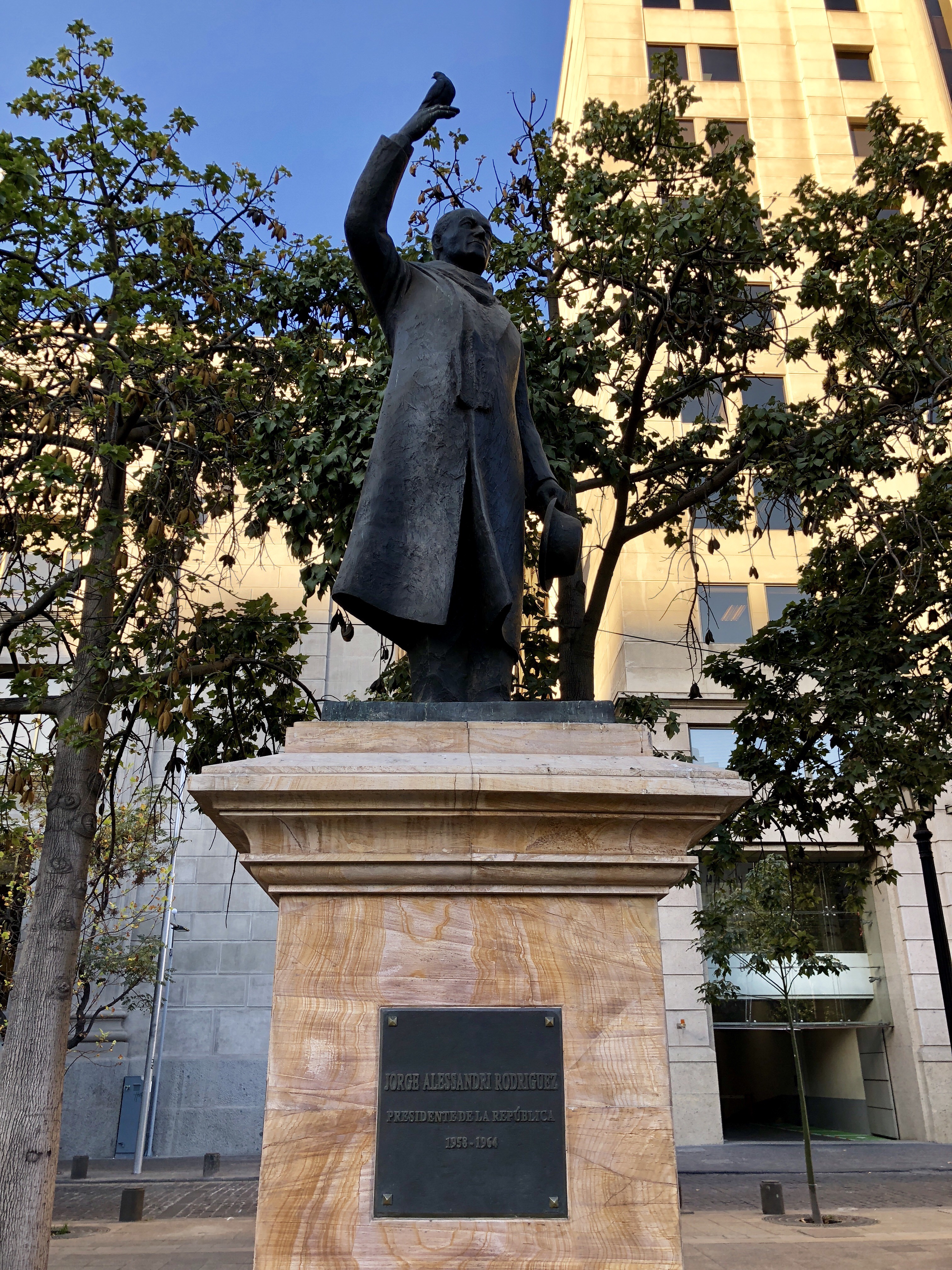 지나가다가 칠레의 31대 대통령 호르헤 알레산드리 로드리게스 대통령 동상이 있어서 찍어보았다.