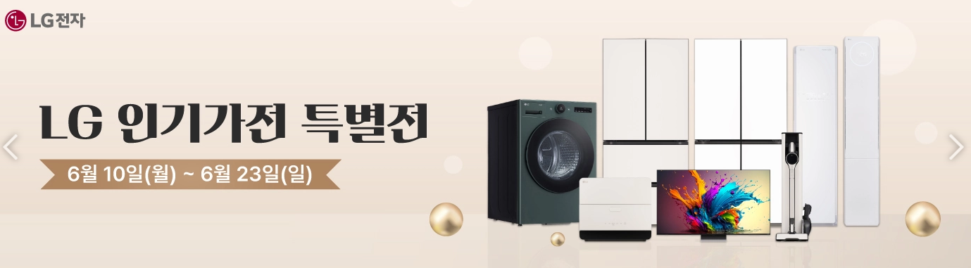 행사품목 : 엘지 QNED evo TV, 엘지 오브제컬렉션 타워 에어컨, LG 오브제 워시콤보 등