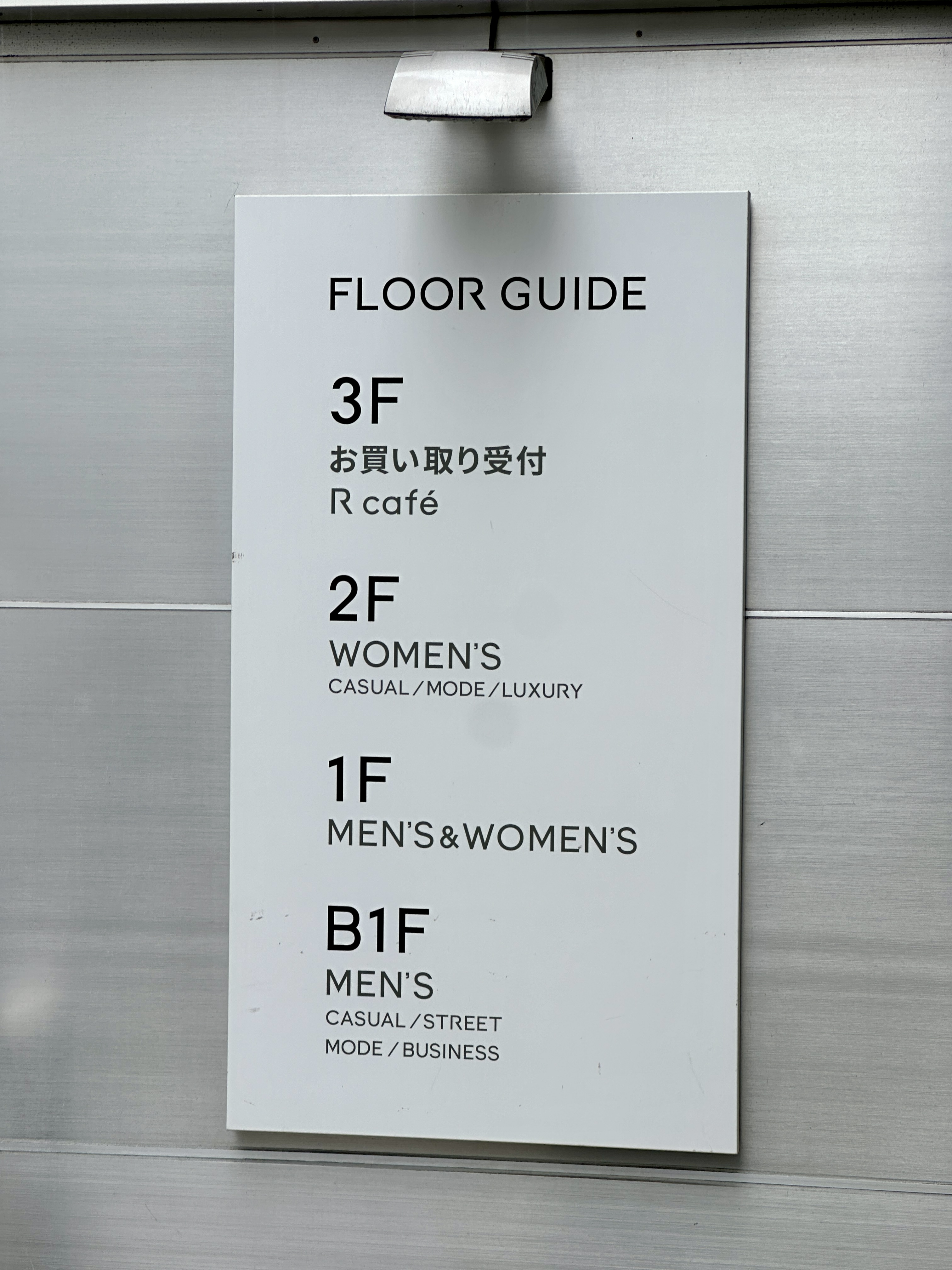 2층이 여성매장이고 지하가 남성전용 매장으로 이루어져 있습니다.