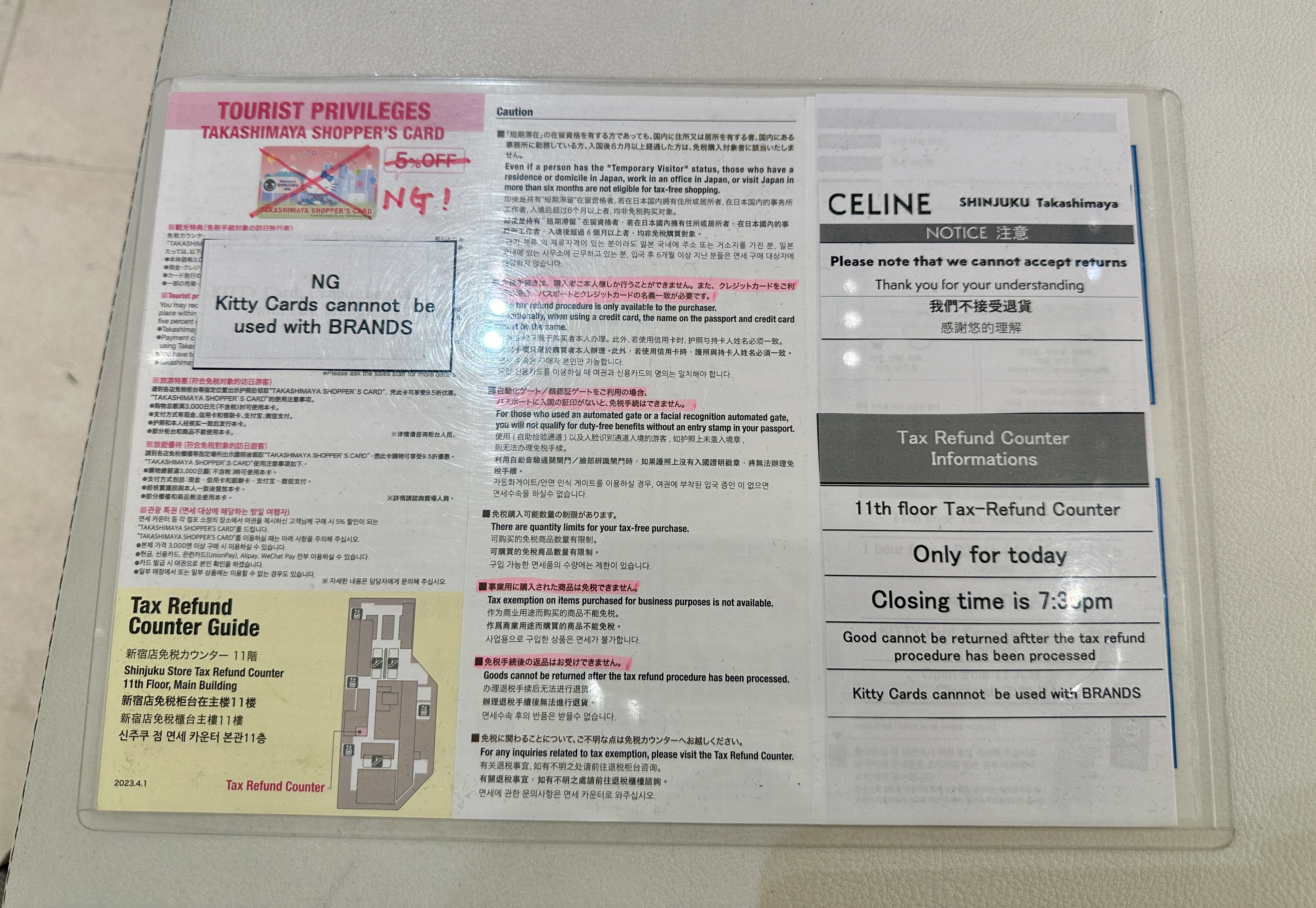 셀린느 매장에는 이세탄 백화점 만큼 다양한 물건과 재고가 있고 역시나 택스리펀도 가능했습니다.