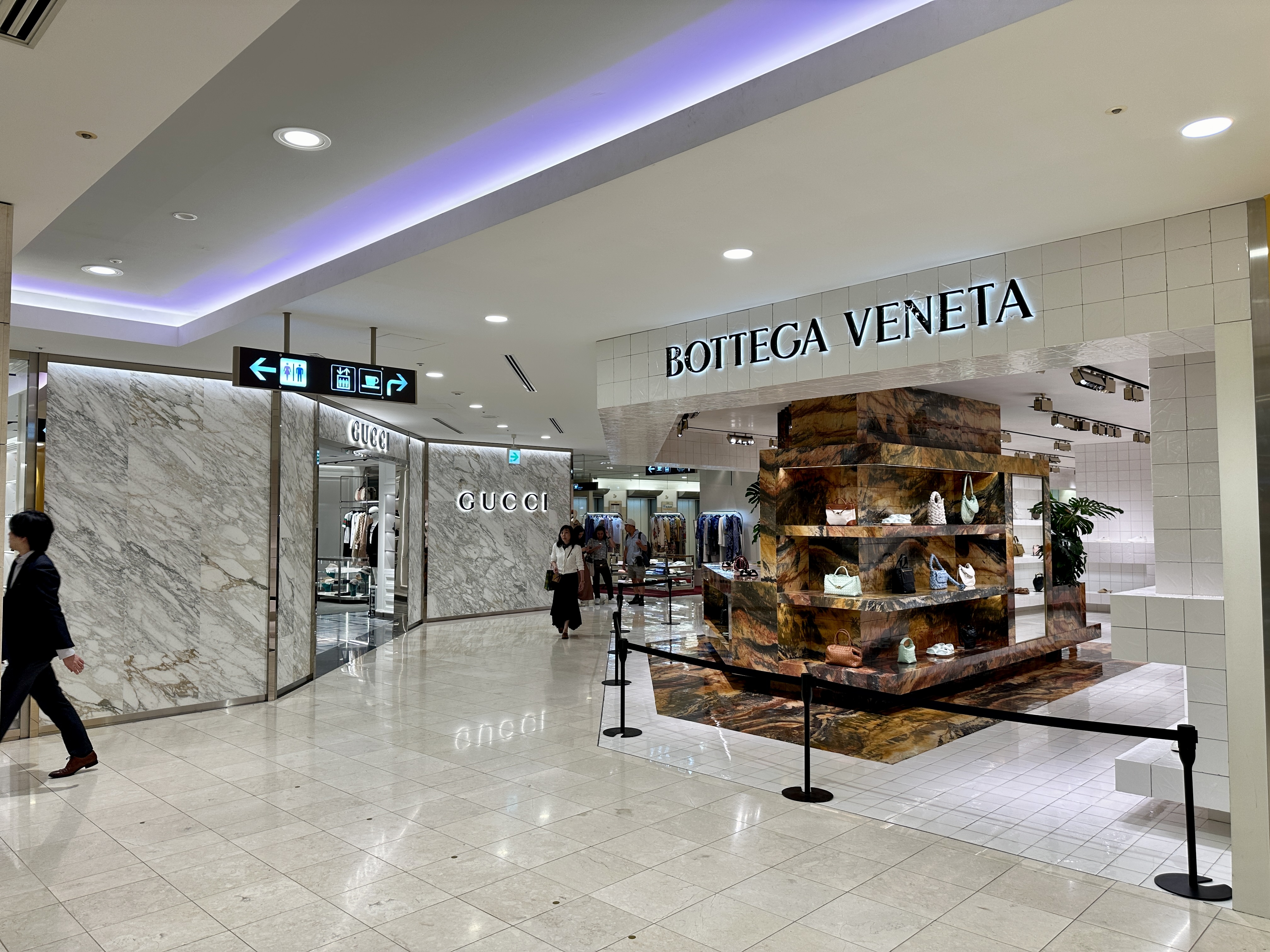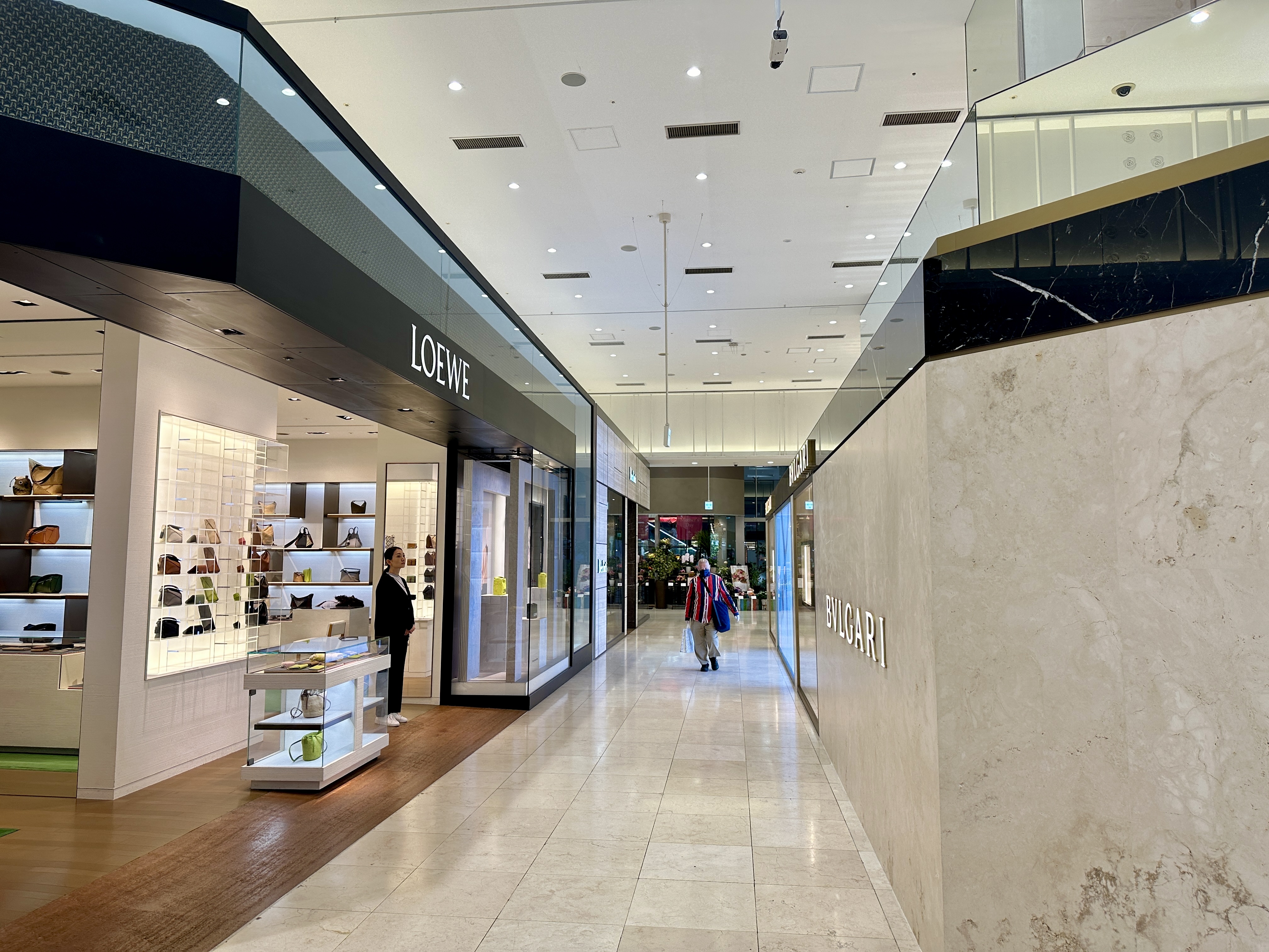 로에베와 불가리가 가장 먼저 보였고 뒤쪽으로 루이비통 매장이 있었습니다.