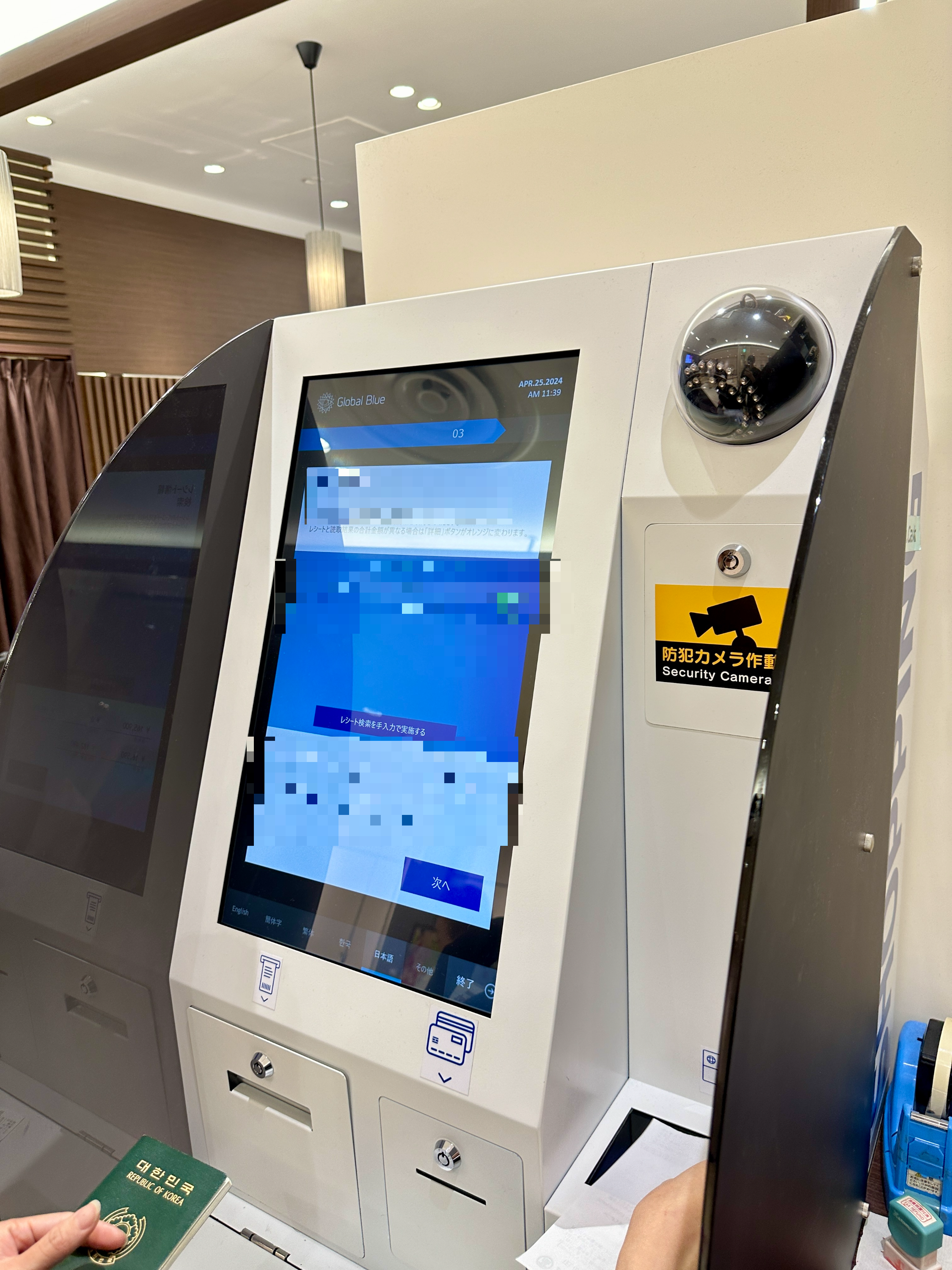 다카시마야 부가세 환급은 기계를 통해서 받게 되는데, 직원분이 구매한 물건과 여권 정보 등을 확인 후 기계에서 택스환급 받는것을 도와주십니다.