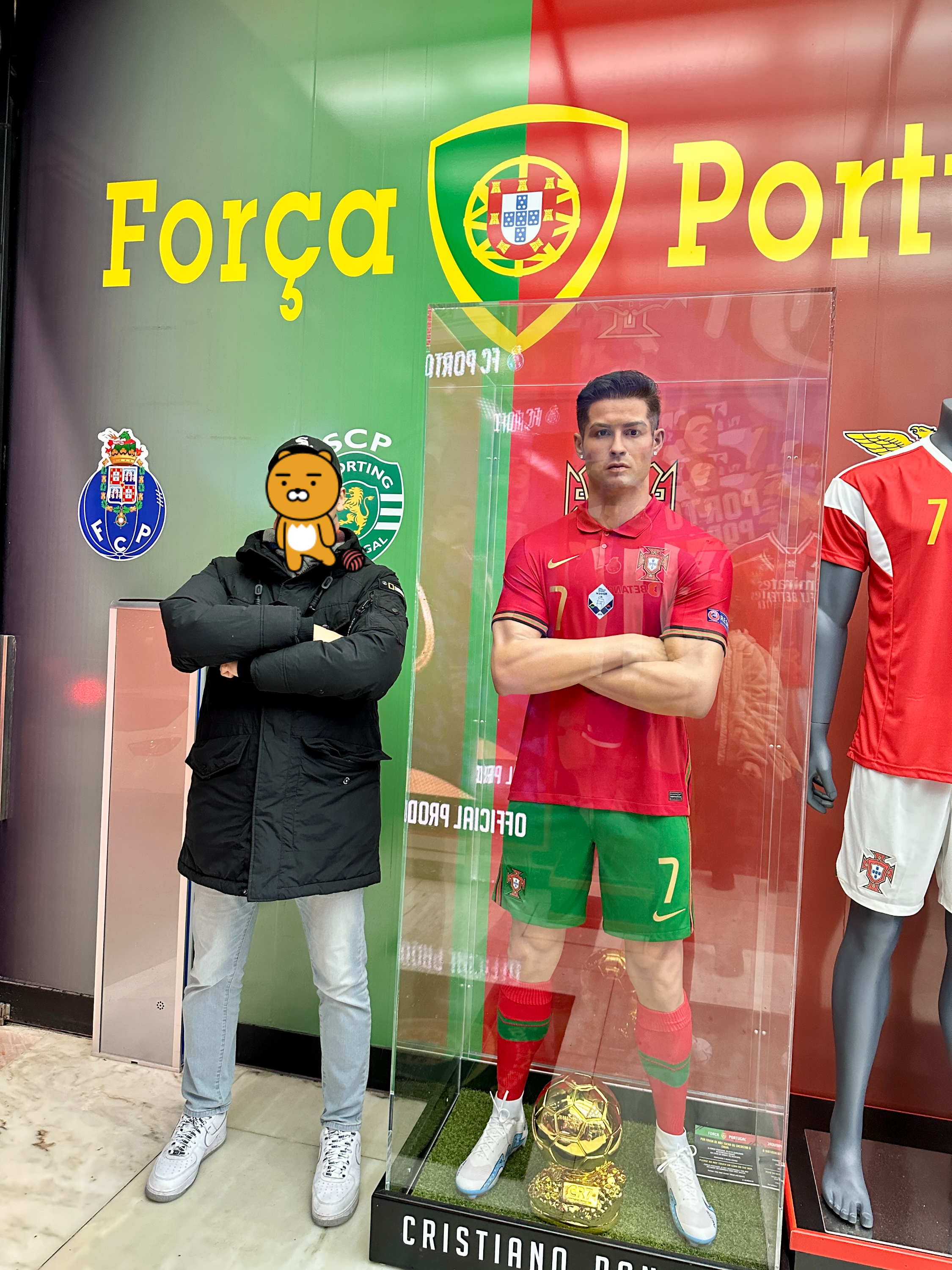 입구에는 호날두 마네킹이 서 있는데 축구 팬들이 인증샷 찍기 좋은 것 같아 저도 찍어보았습니다.