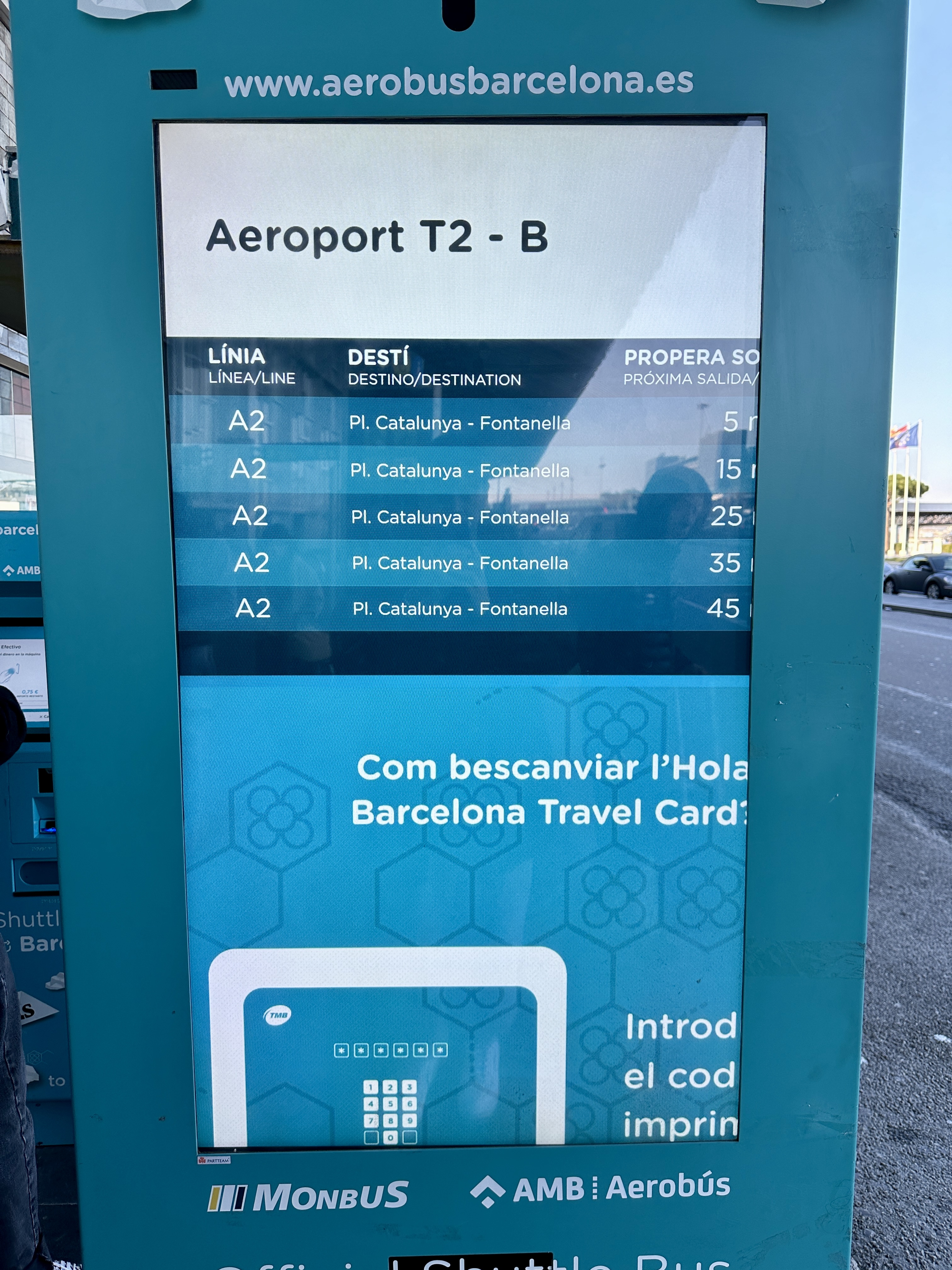 카탈루냐 광장까지 약 1시간정도 소요되며, 버스 배차간격도 짧아서 줄이 금방 줄어들었습니다.