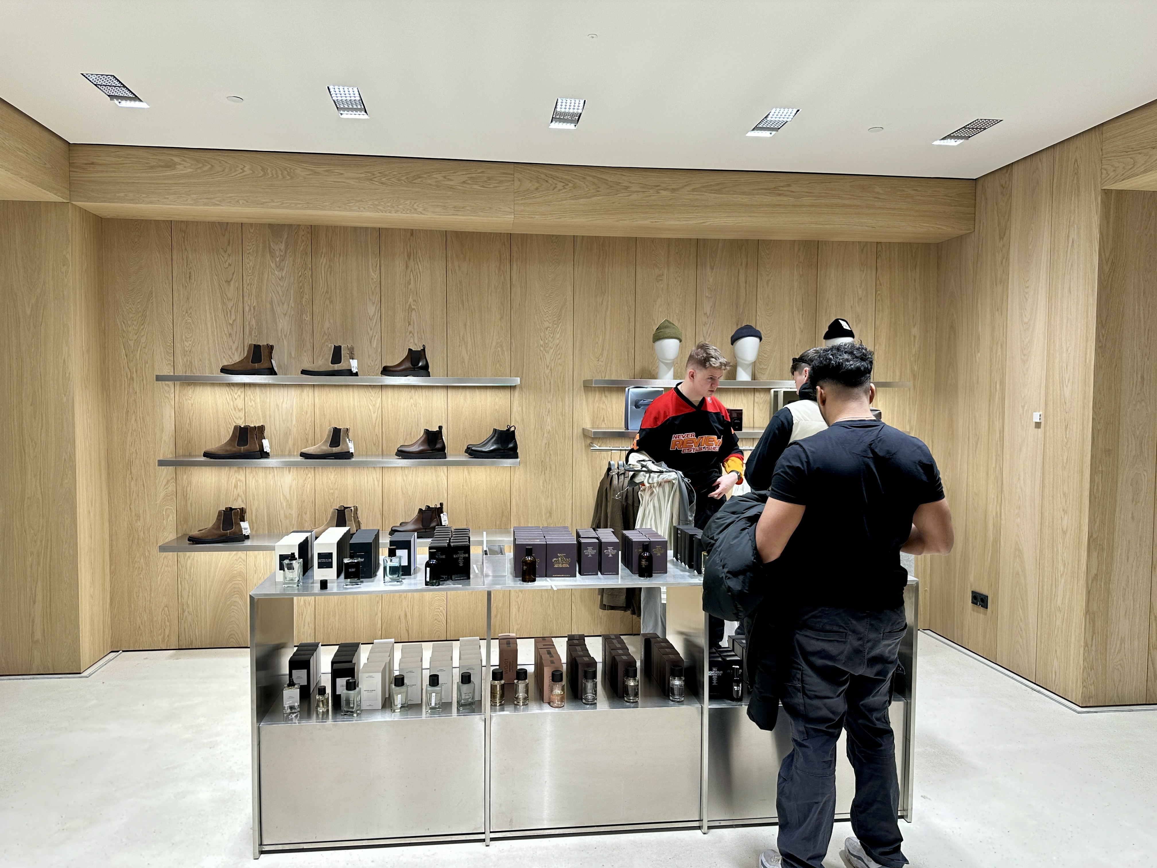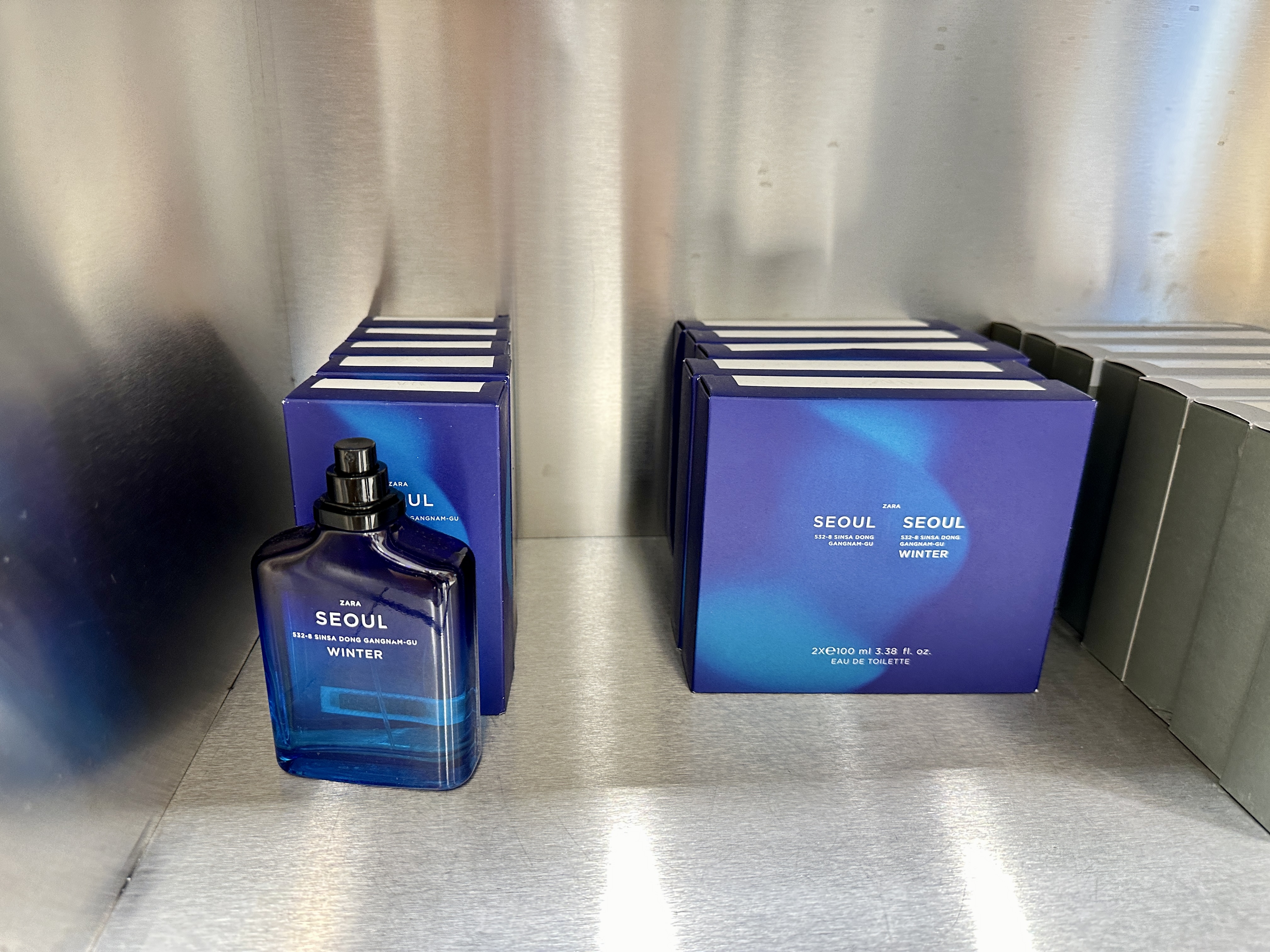 1층과 2층은 여성복과 향수 등을 판매하고 있고, 3층은 남자 의류 판매 및 피팅룸이 있습니다.