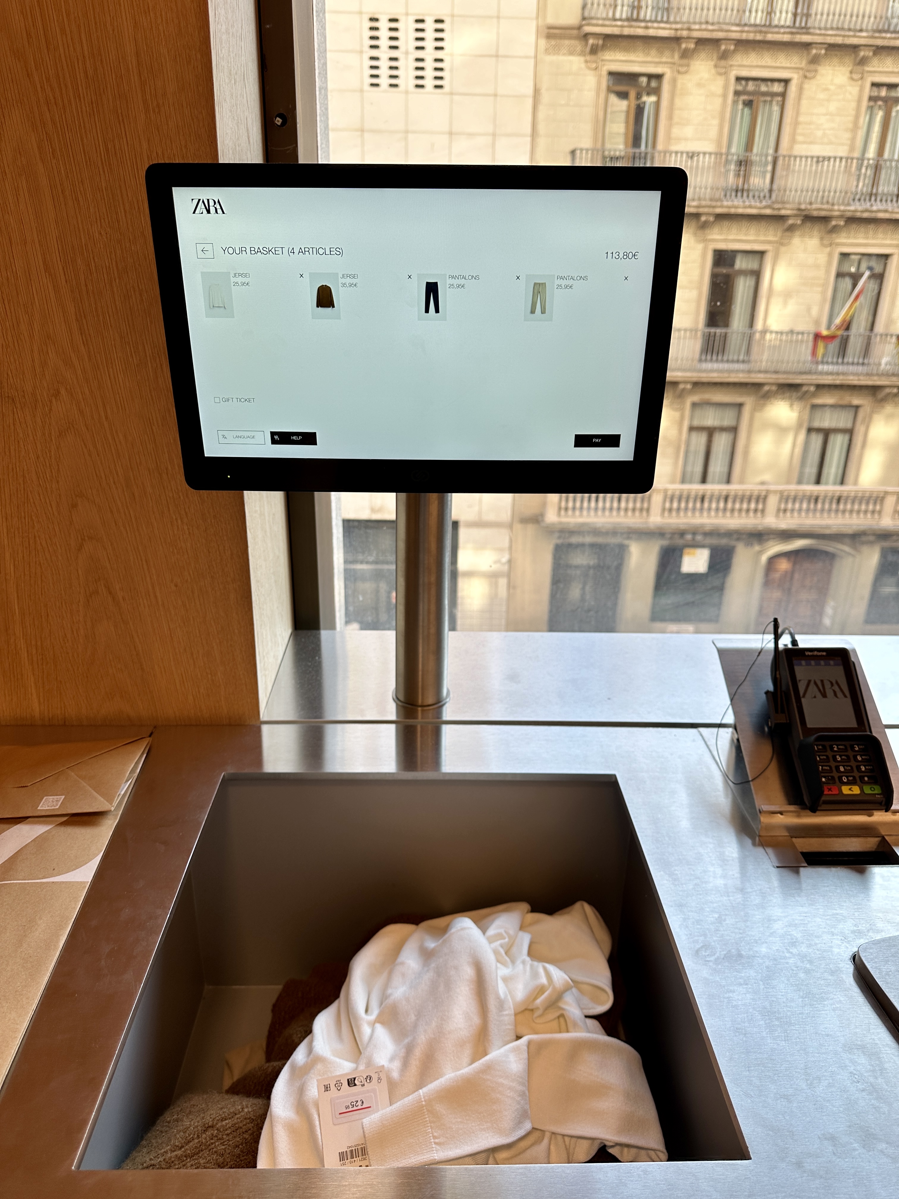 우선 자라 회원 가입을 하고 셀프 계산을 한 뒤 직원에게 요청하면 택스리펀드 서류를 줍니다.