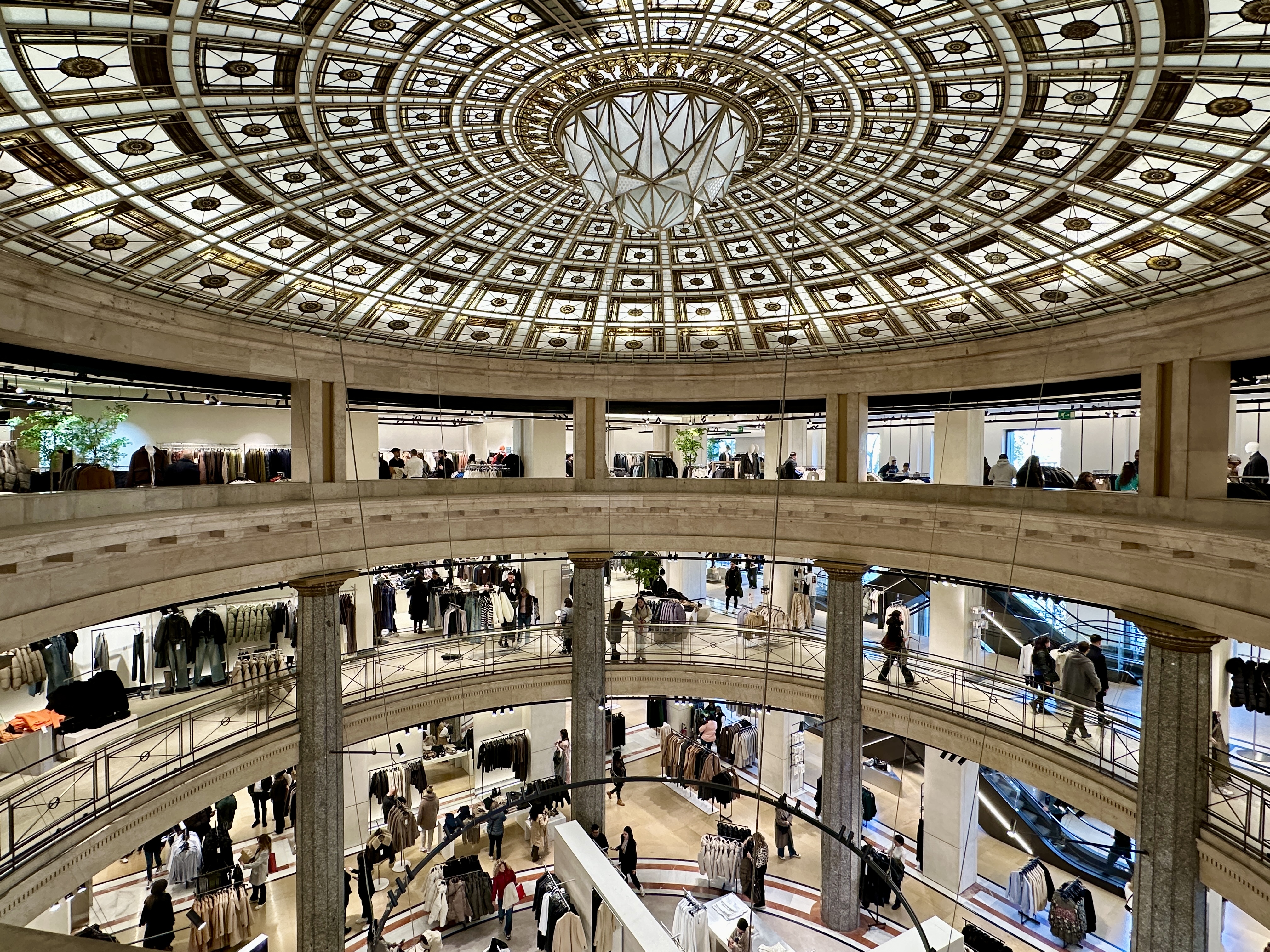 스페인 바르셀로나 카탈루냐 광장 옆 자라 매장은 총 3층 규모의 매장으로 예쁜 돔 천장이 있습니다.