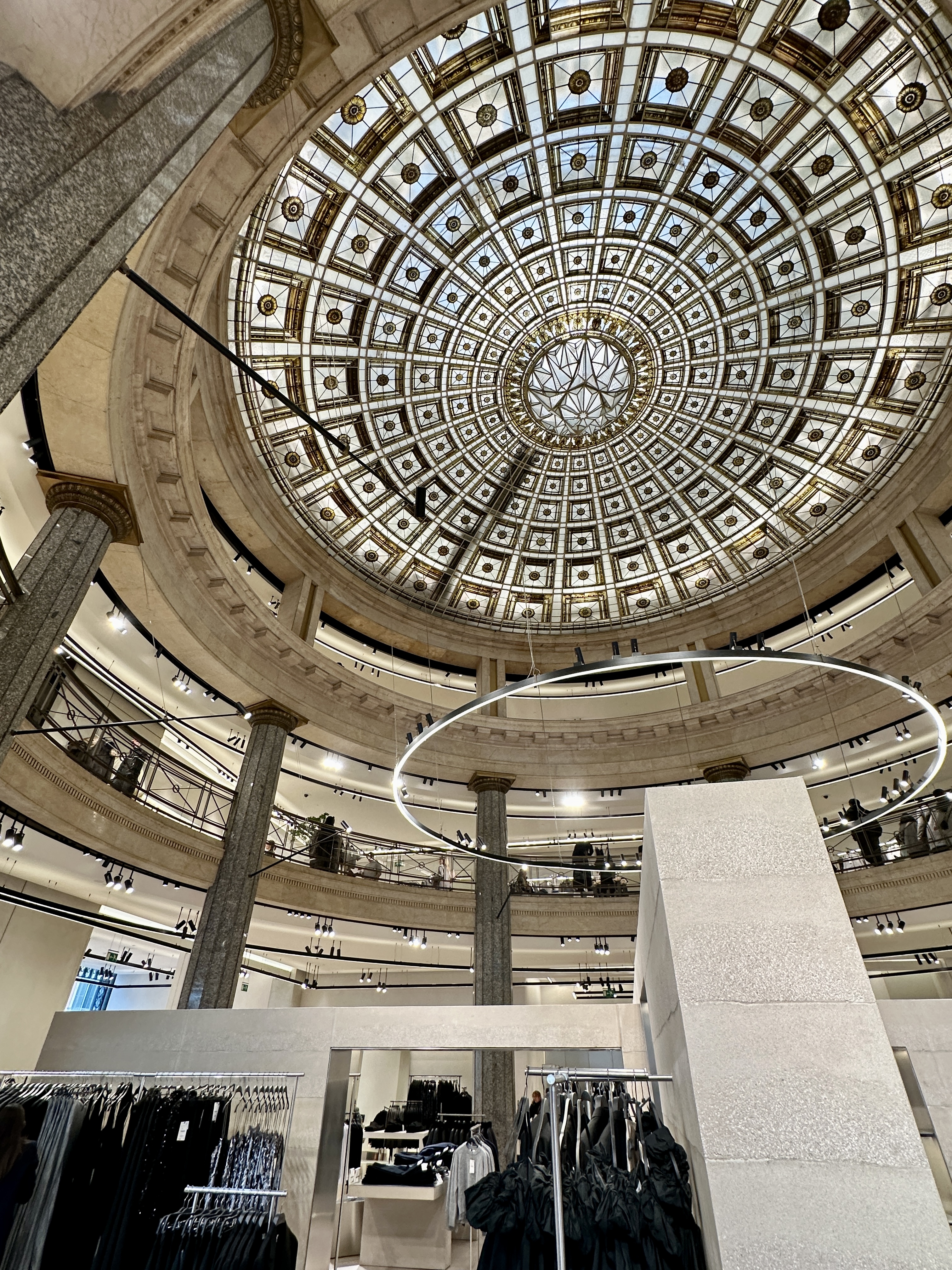 스페인 바르셀로나 카탈루냐 광장 옆 자라 매장은 총 3층 규모의 매장으로 예쁜 돔 천장이 있습니다.