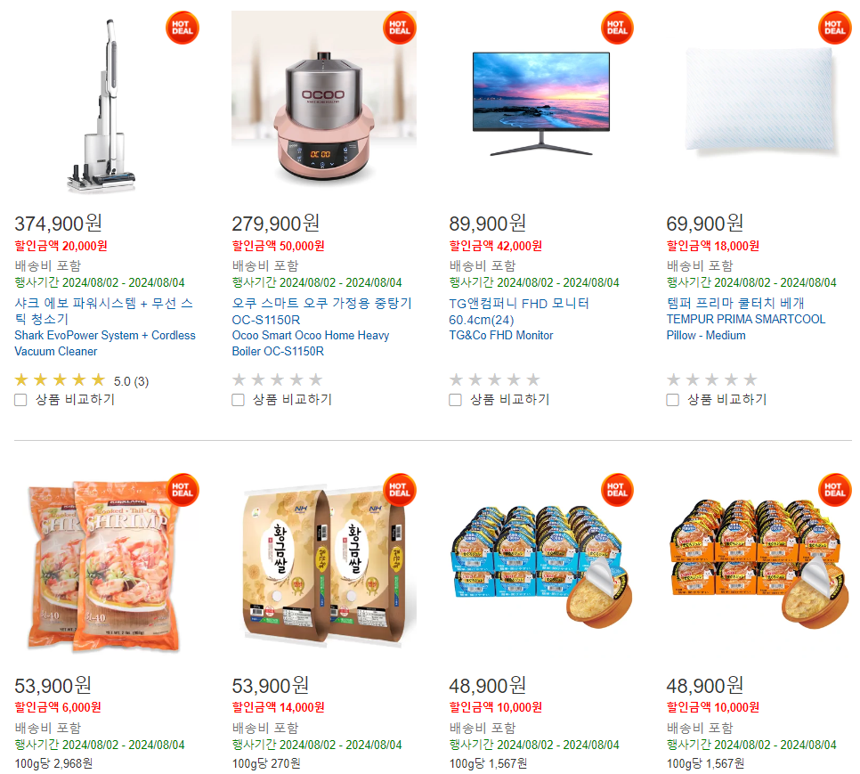 세일 품목은 가전부터 베개 그리고 식품까지 다양하며 일부 품목은 아래 사진 첨부합니다.