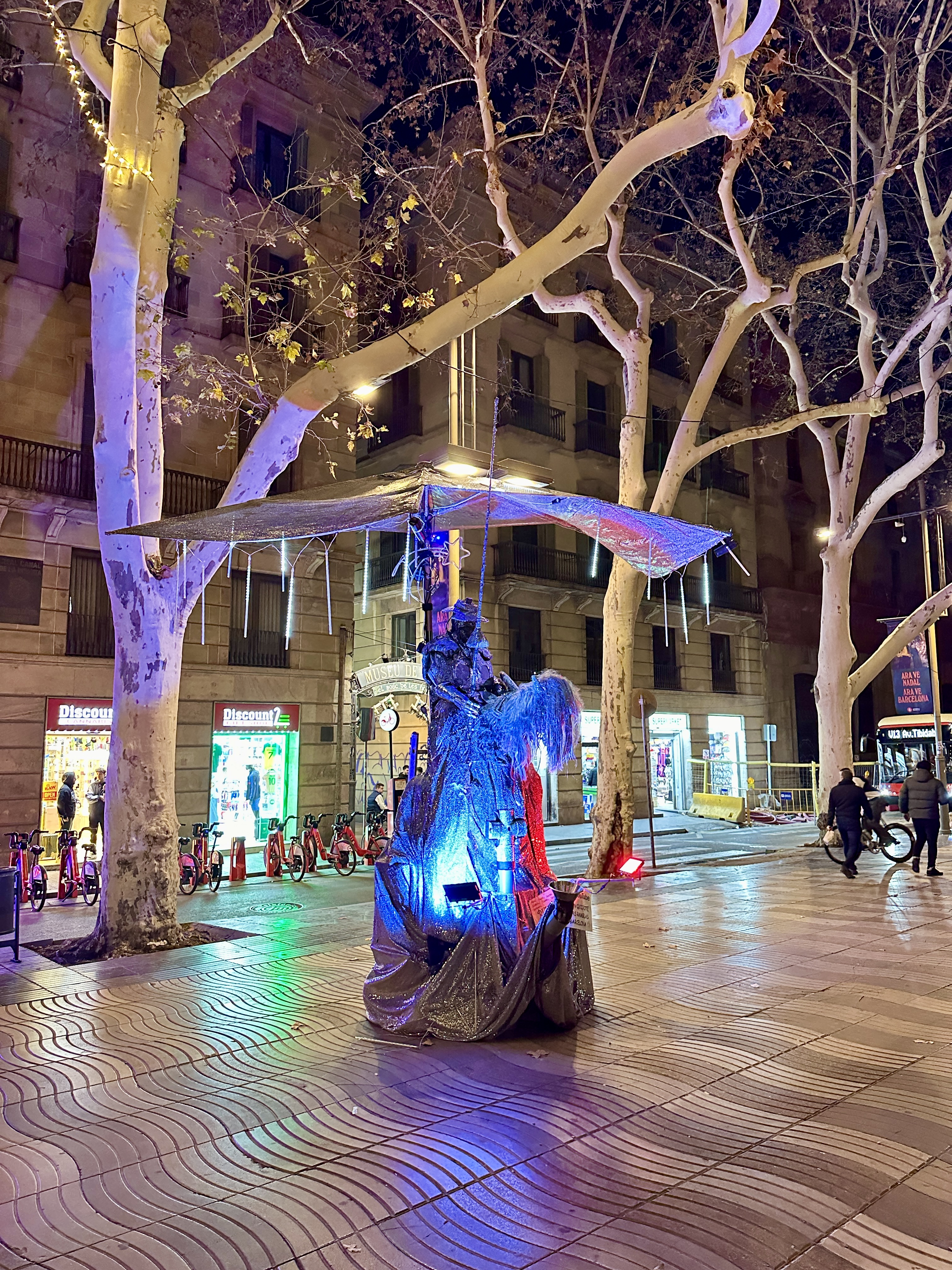 람블라스 거리의 밤을 특별하게 만드는 요소 중 하나는 다양한 거리 예술과 공연입니다.