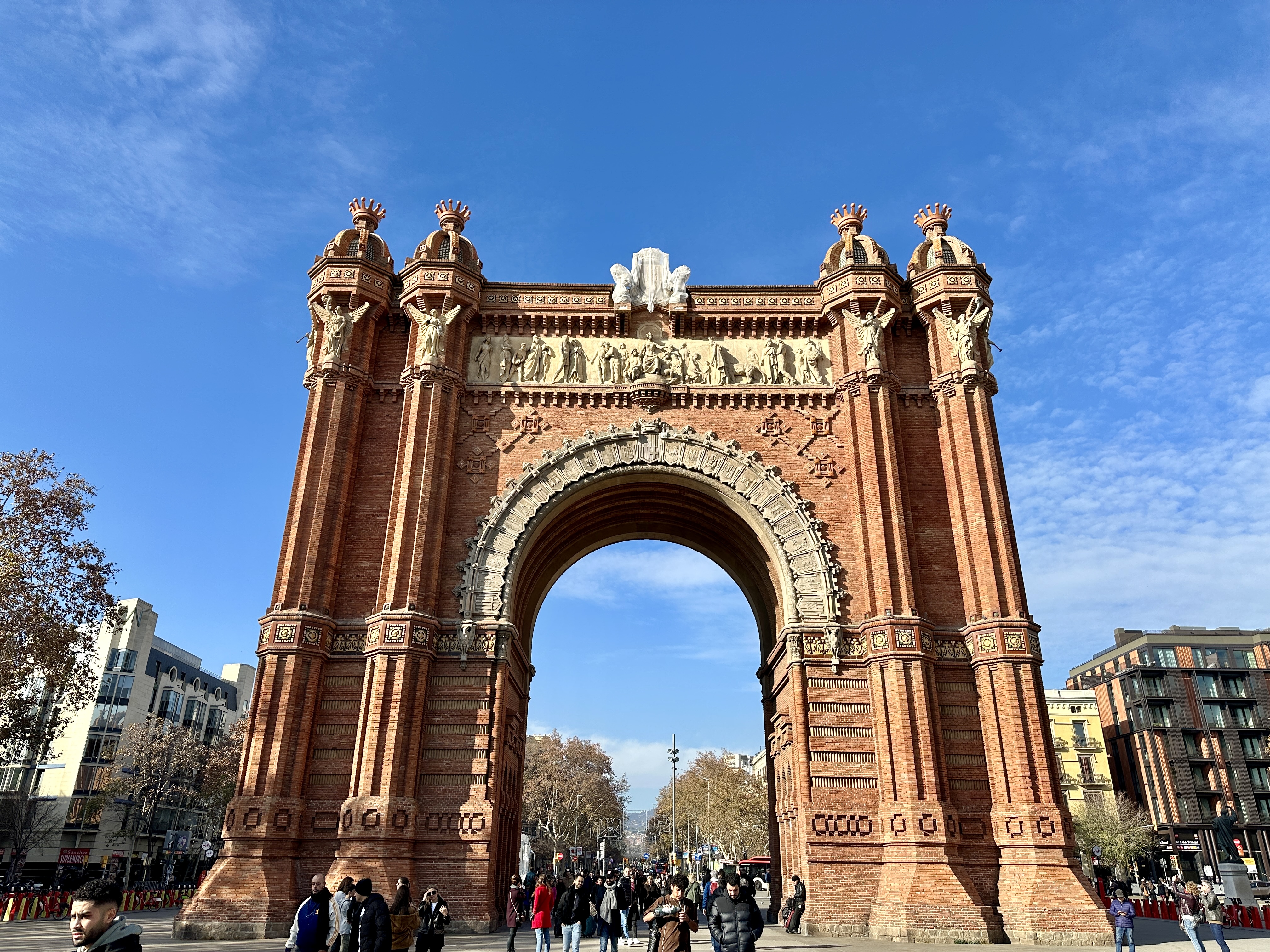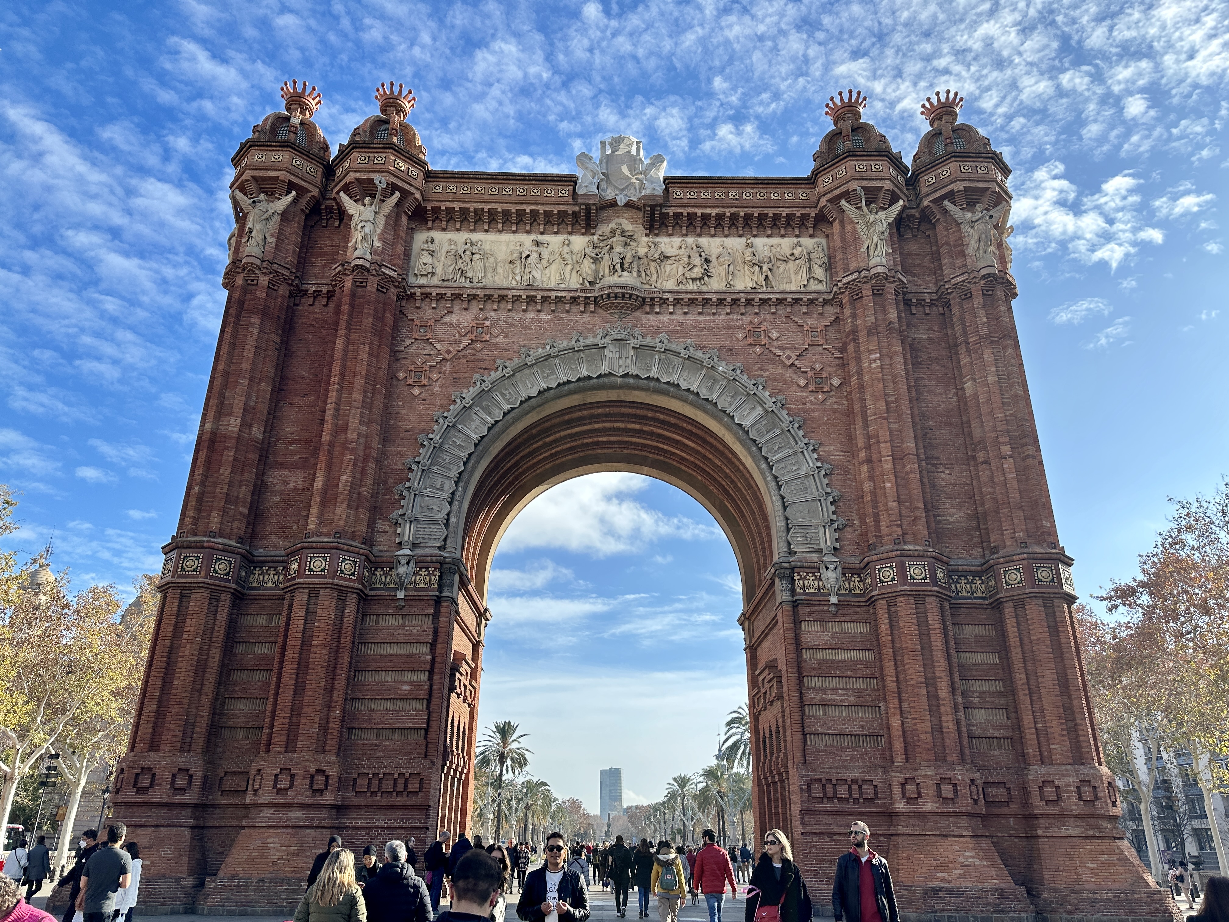 또한, 아치 위에는 다양한 조각과 장식이 있어 바르셀로나의 문화와 역사를 표현하고 있습니다.