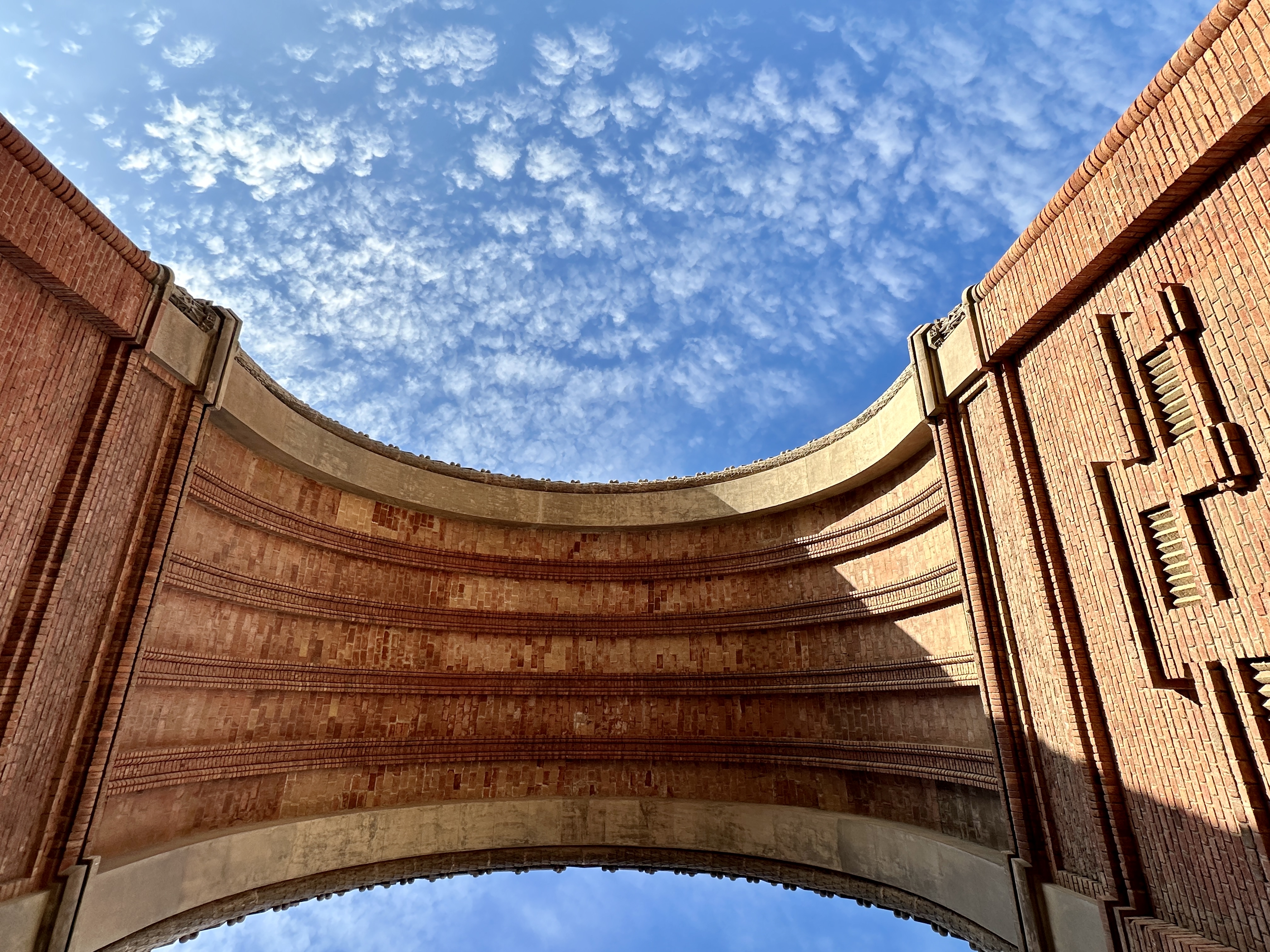 아르크 데 트리옴프는 붉은 벽돌로 만들어졌으며, 아치형 구조가 인상적입니다.